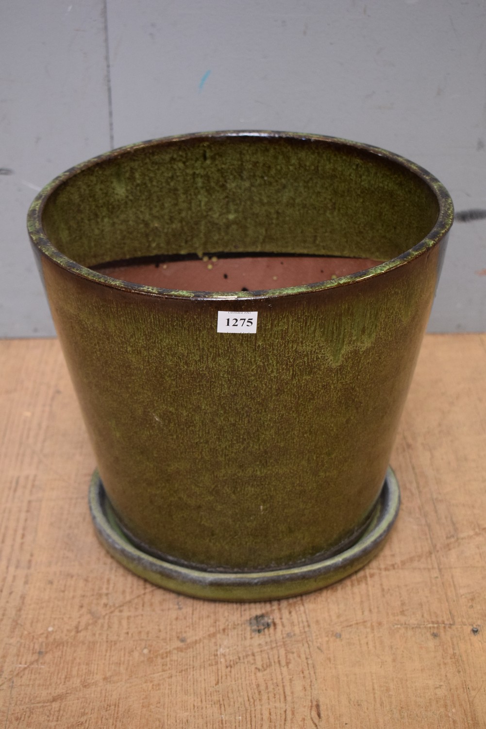 A GLAZED TERRACOTTA POT WITH PLATE (28H x 31D CM) (LEONARD JOEL DELIVERY SIZE: SMALL)