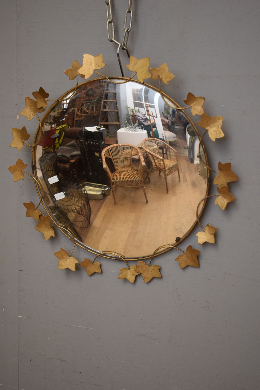 A CONVEX METAL MIRROR WITH LEAF DETAILING (D42 CM) (LEONARD JOEL DELIVERY SIZE: MEDIUM)