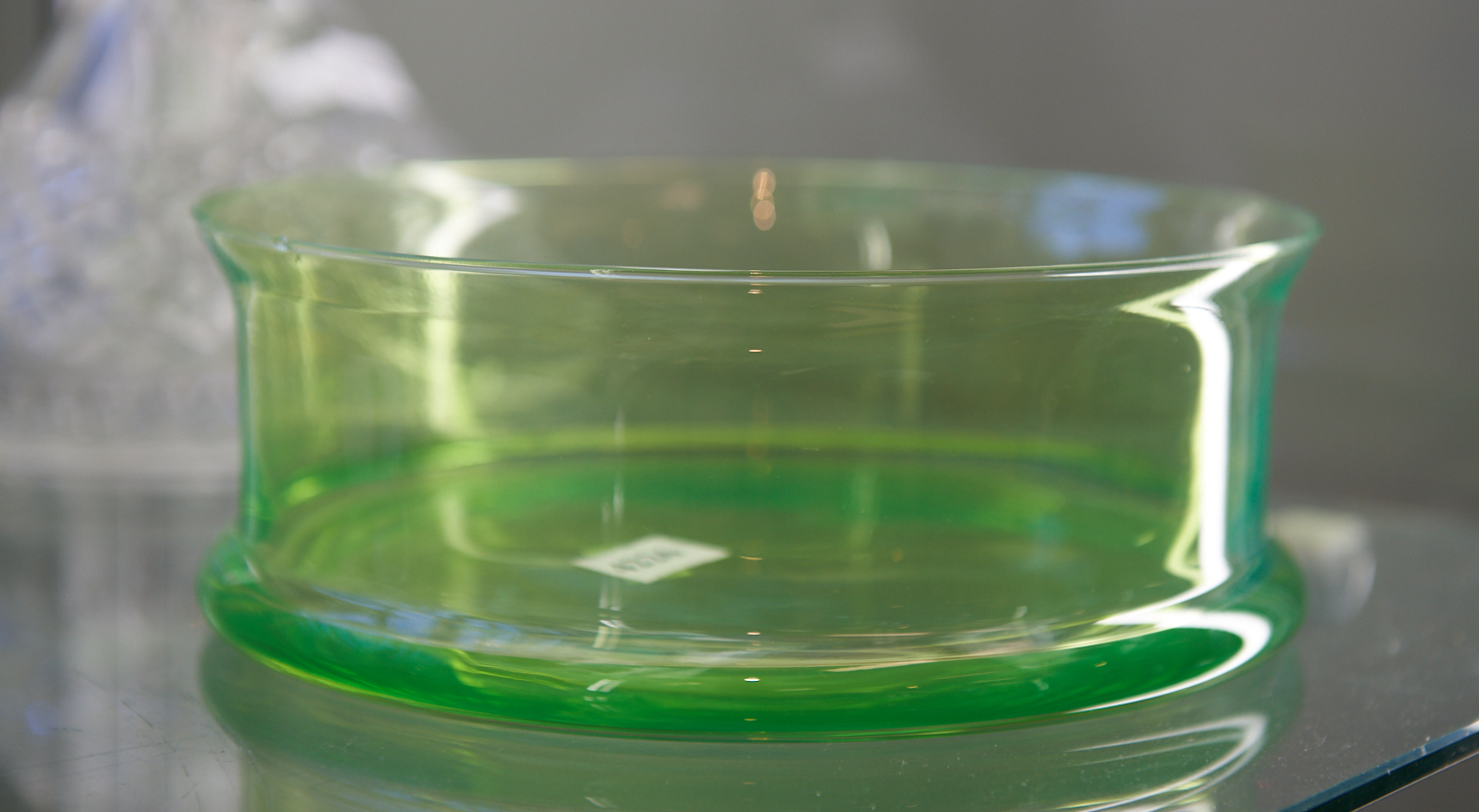 A GREEN GLASS BOWL DIA.21CM, LEONARD JOEL LOCAL DELIVERY SIZE: SMALL