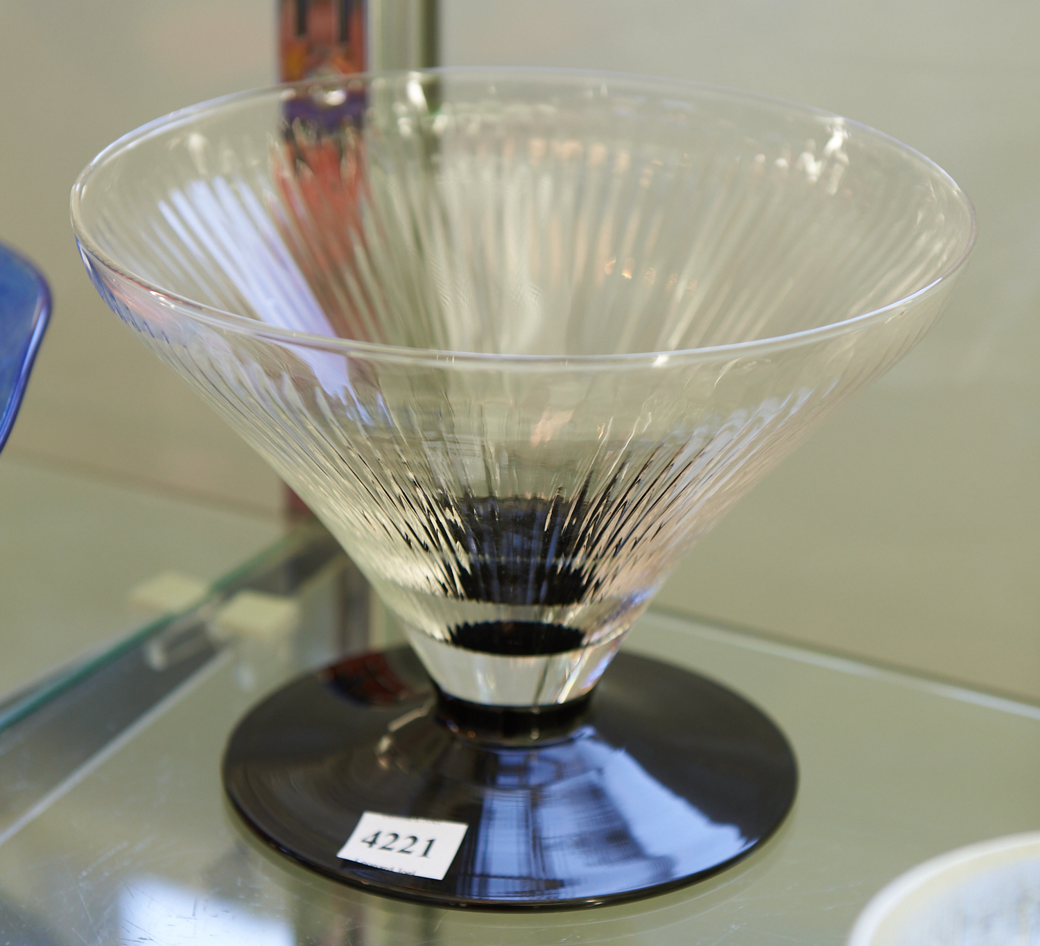 A CRYSTAL BOWL WITH BLACK BASE H.14.5CM, LEONARD JOEL LOCAL DELIVERY SIZE: SMALL