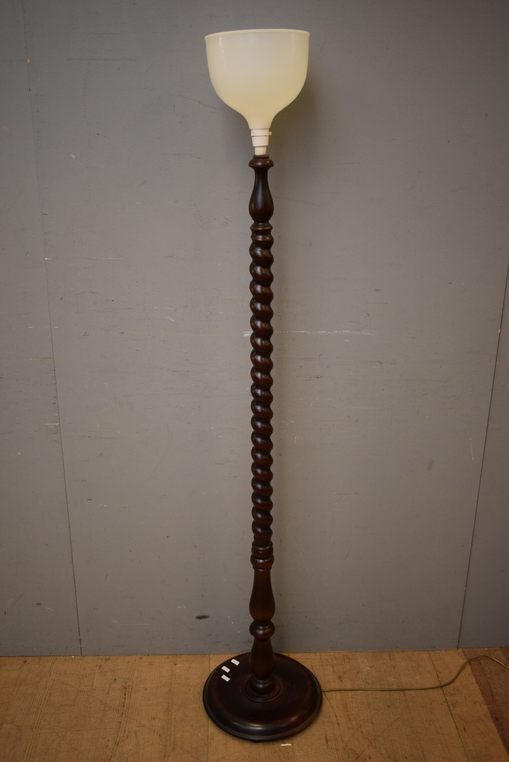 A 1920S BARLEY TWIST TURNED STANDARD LAMP - NEEDS REWIRING (165 CM H) (LEONARD JOEL DELIVERY SIZE: MEDIUM)