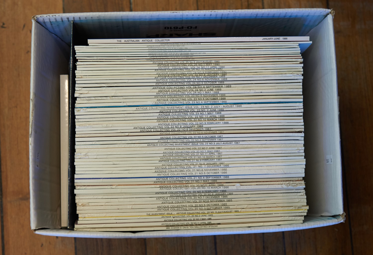 A BOX OF ANTIQUE COLLECTORS CLUB JOURNALS, LEONARD JOEL LOCAL DELIVERY SIZE: SMALL