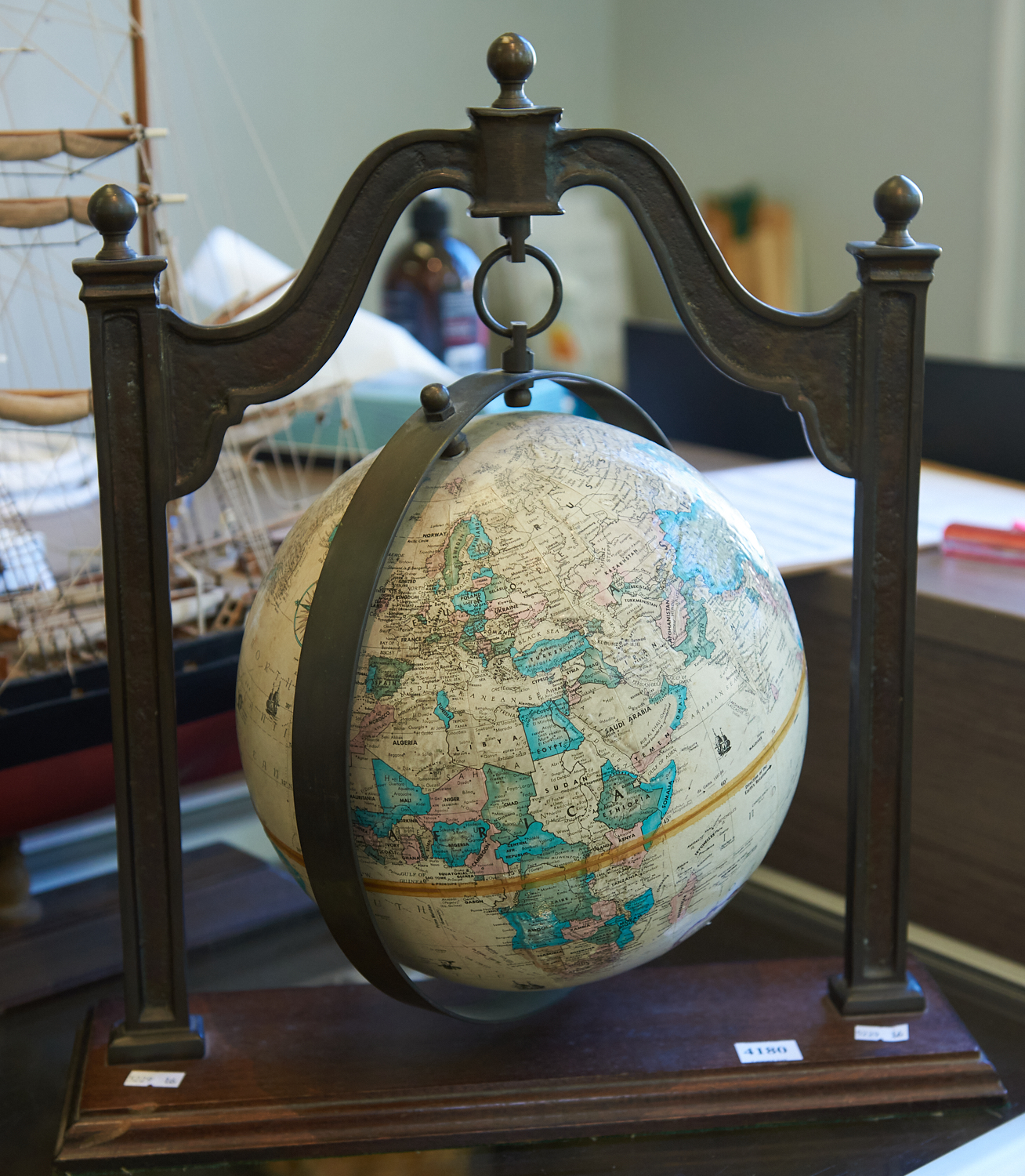 A WORLD GLOBE METAL FRAME, LEONARD JOEL LOCAL DELIVERY SIZE: SMALL
