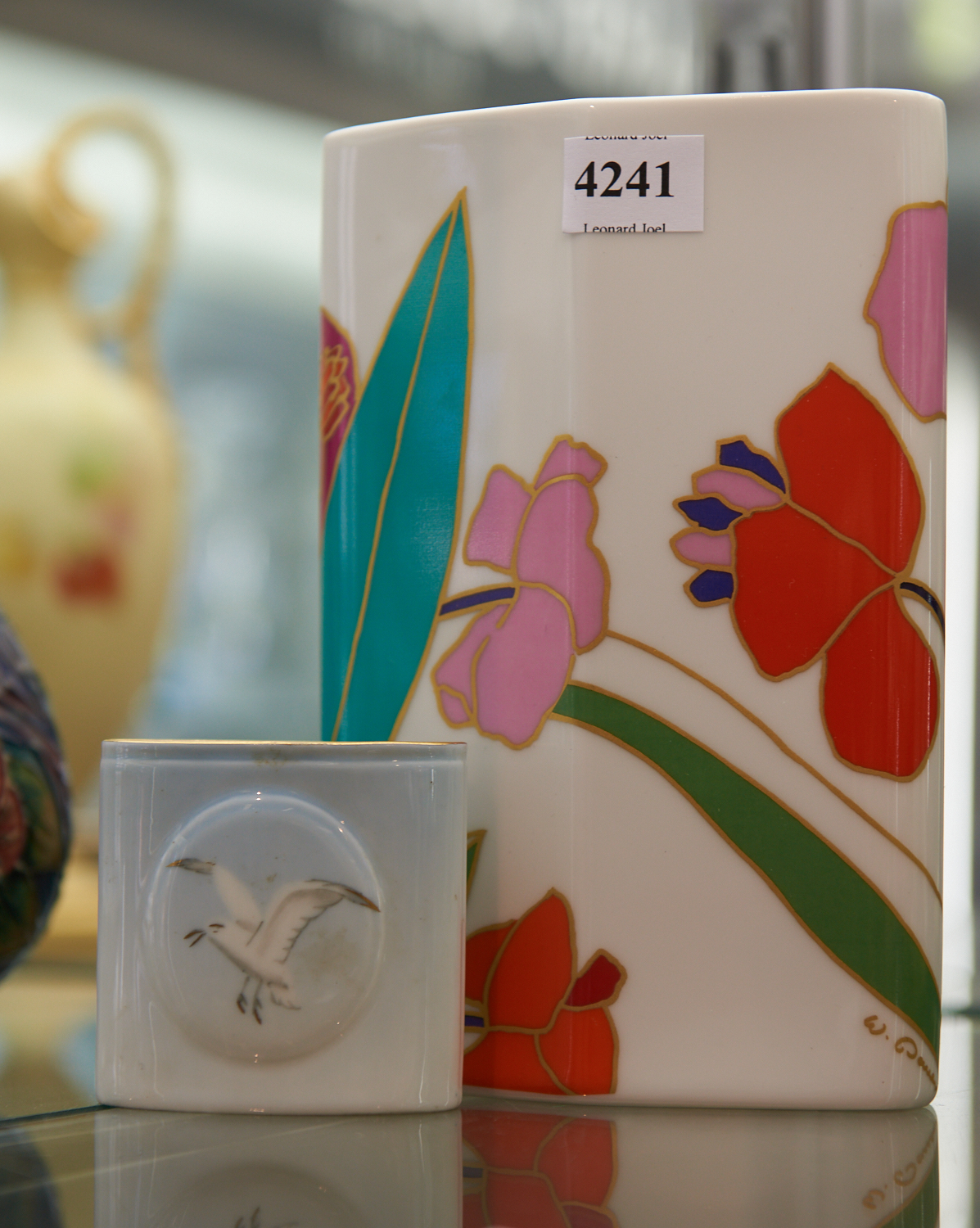 A ROSENTHAL VASE OVAL COLOURFUL WITH ANOTHER VASE, LEONARD JOEL LOCAL DELIVERY SIZE: SMALL