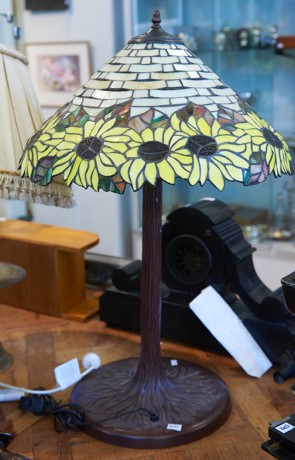 A LARGE TABLE LAMP WITH TIFFANY STYLE SHADE (A/F) H.81CM, LEONARD JOEL LOCAL DELIVERY SIZE: SMALL
