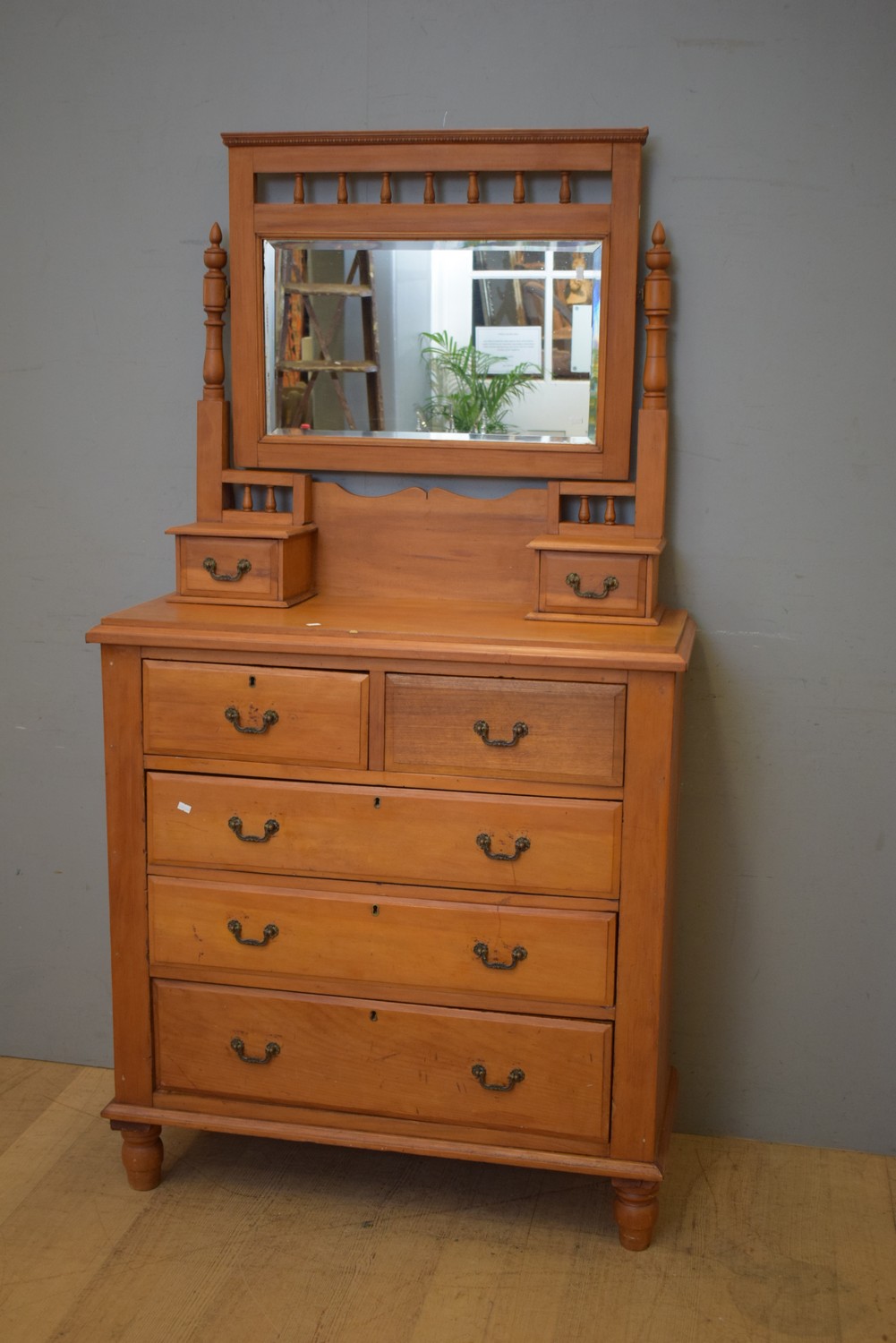 AN AUSTRALIAN EDWARDIAN PINE 5 DRAWER DUCHESS CHEST OF DRAWERS WITH MIRROR AND RETURN DRAWERS (A/F) (185H x 99W x 42D CM) (PLEASE NOTE THIS HEAVY ITEM MUST BE REMOVED BY CARRIERS AT THE CUSTOMER'S EXPENSE. LEONARD JOEL STAFF CANNOT ASSIST CARRYING THIS ITEM) (X-LARGE ITEM)