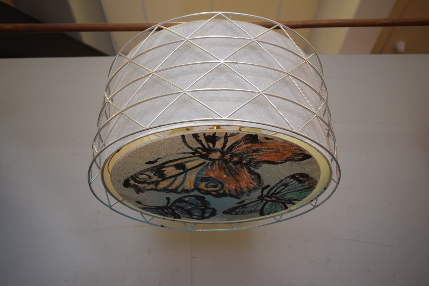 LARGE DAVID BROMLEY HAND PAINTED BUTTERFLY DECORATED HANGING LIGHT SHADE (25H x 50D CM) (LEONARD JOEL DELIVERY SIZE: MEDIUM)
