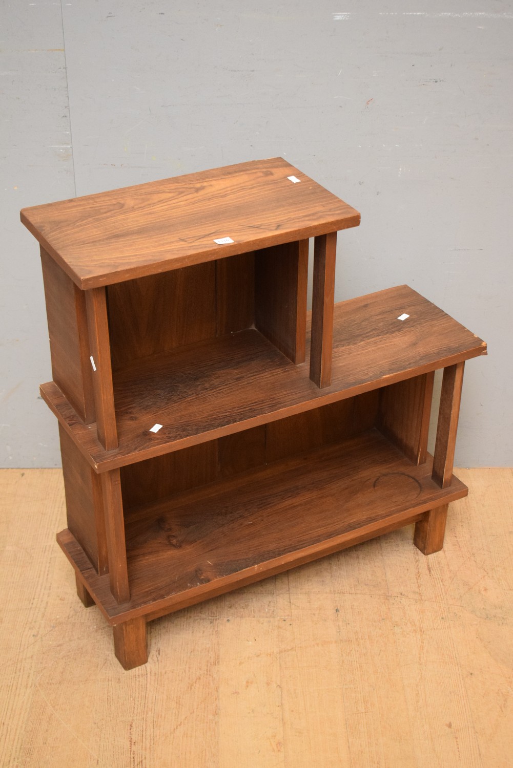 AN AUSTRALIAN 2 TIER WOODEN WATERFALL BOOKCASE (A/F) (80H x 74W x 24D CM) (LEONARD JOEL DELIVERY SIZE: MEDIUM)