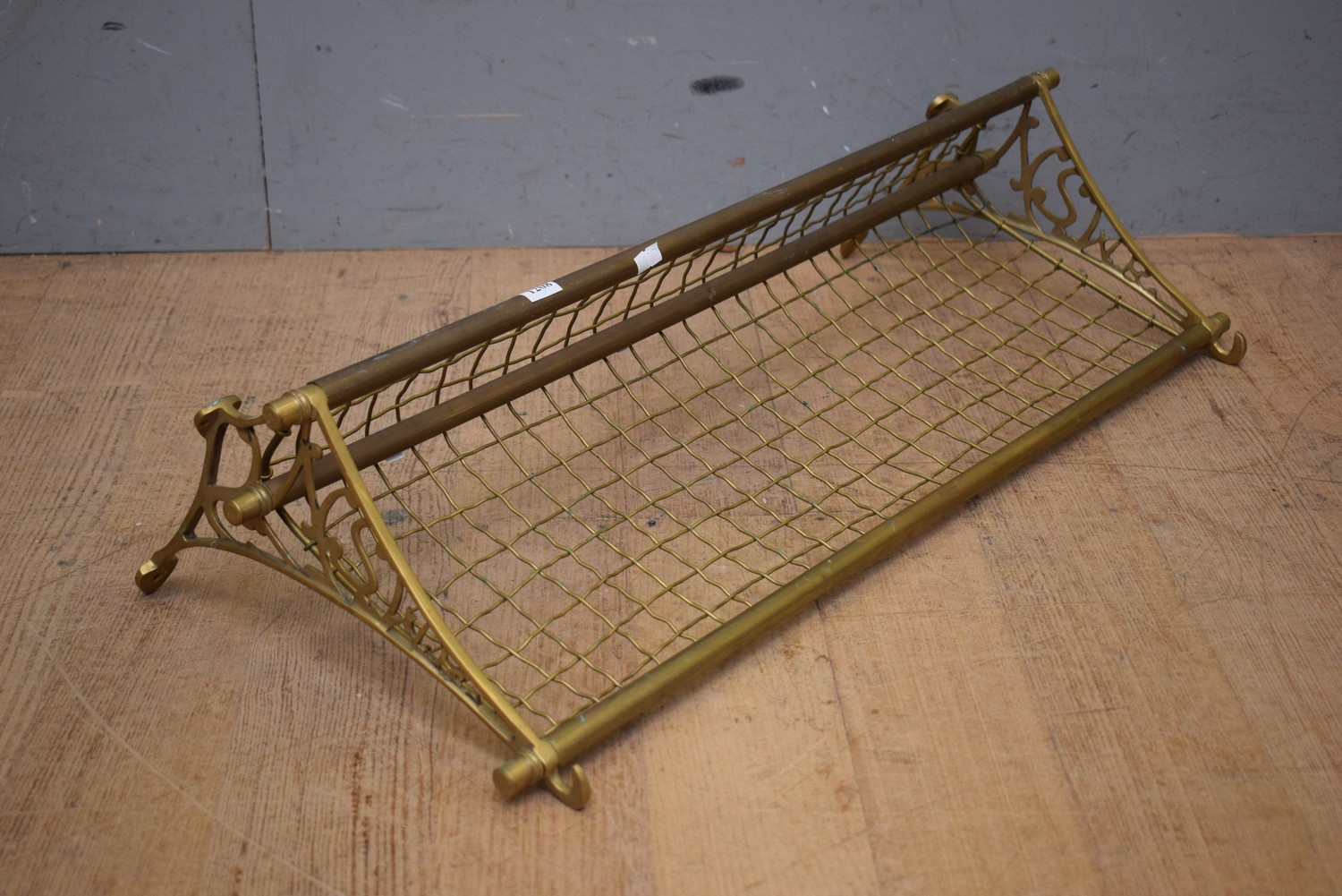 A 1940S SOLID BRASS NSW TRAMWAYS LUGGAGE RACK (33H x 75W CM) (LEONARD JOEL DELIVERY SIZE: SMALL)