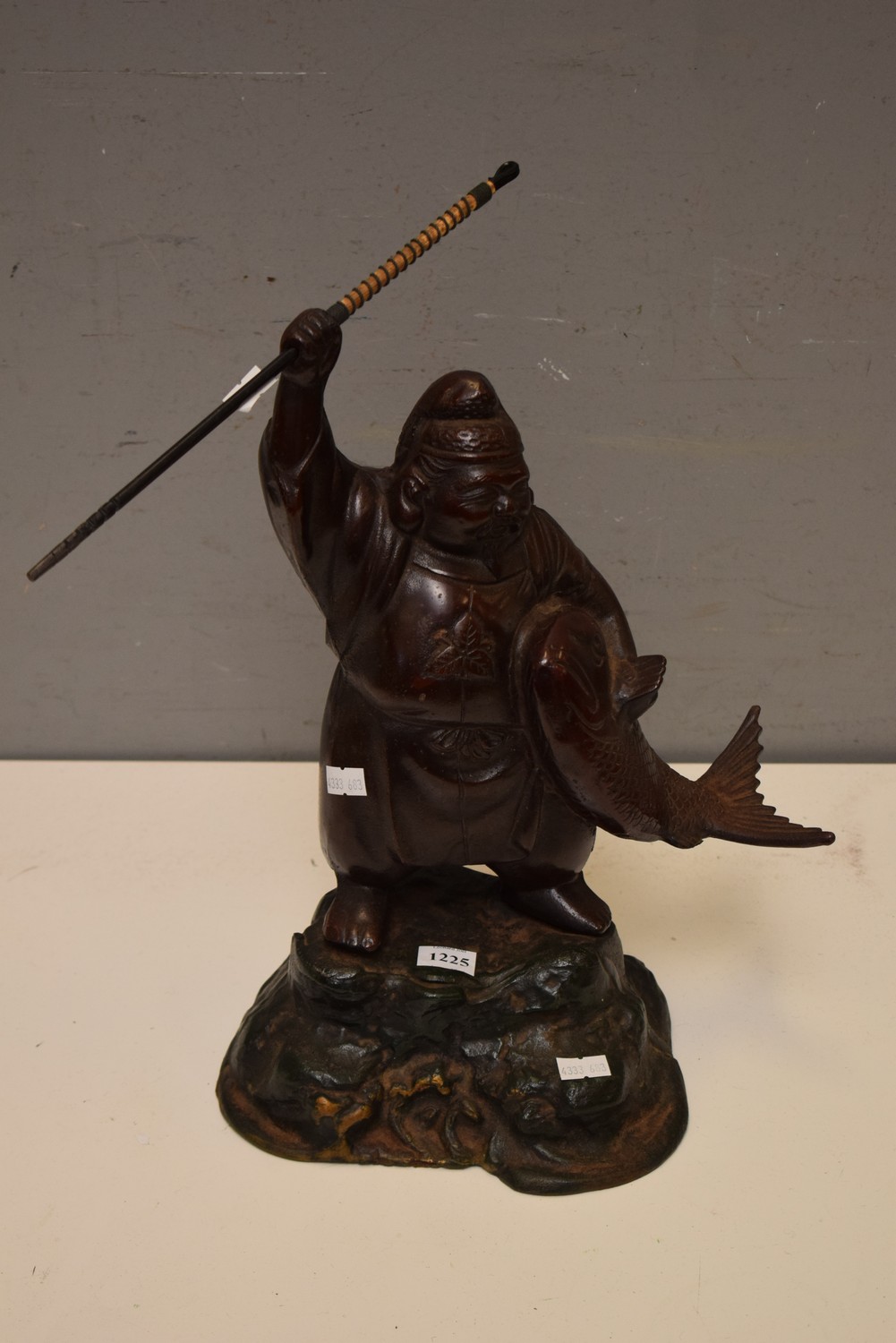 A 1920S JAPANESE BRONZED CAST IRON FISHERMAN FIGURE WITH SPEAR IN HAND (39H CM) (LEONARD JOEL DELIVERY SIZE: SMALL)