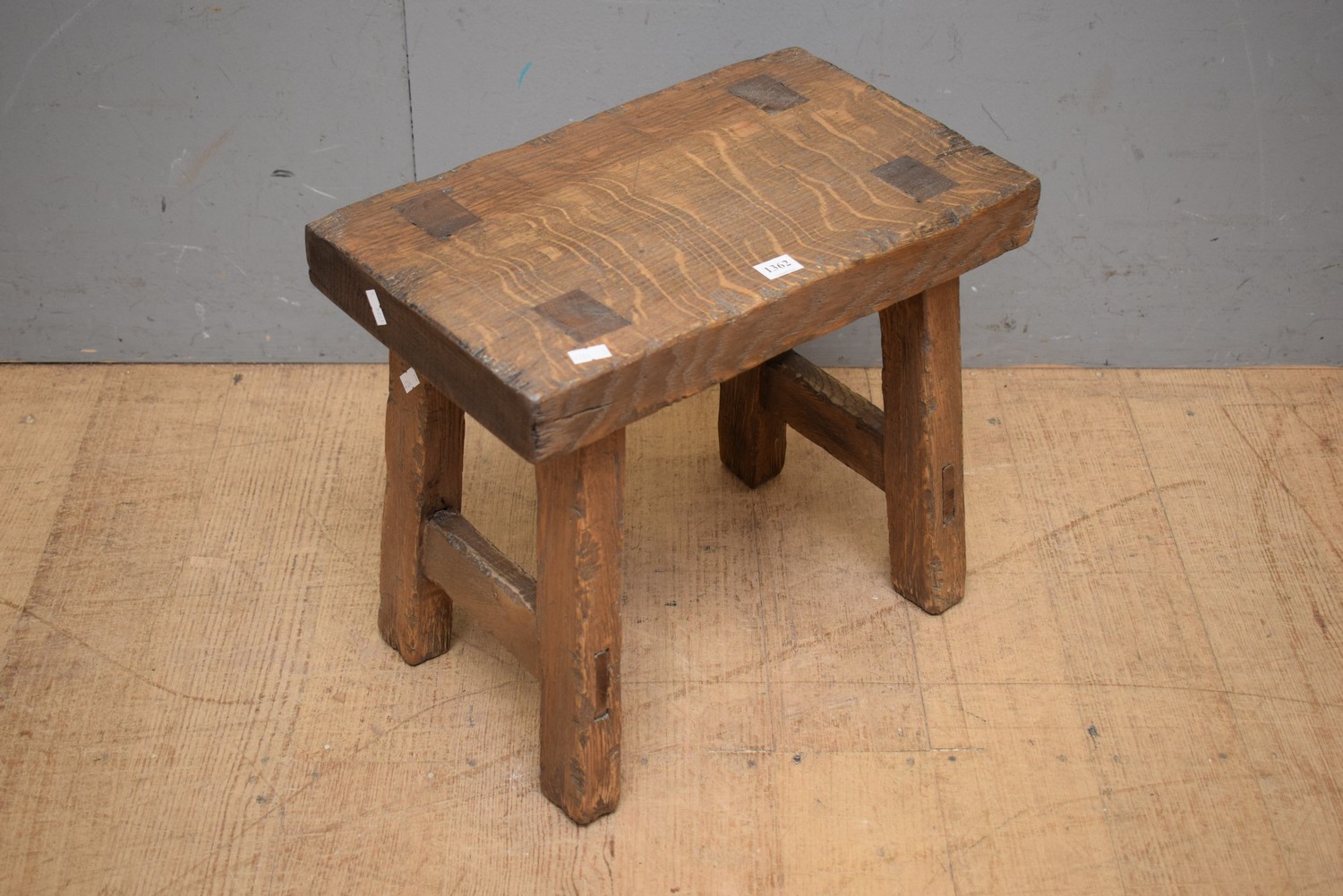 A FRENCH OAK FARMHOUSE STYLE MILKING STOOL (35H x 40W x 24D CM) (LEONARD JOEL DELIVERY SIZE: SMALL)