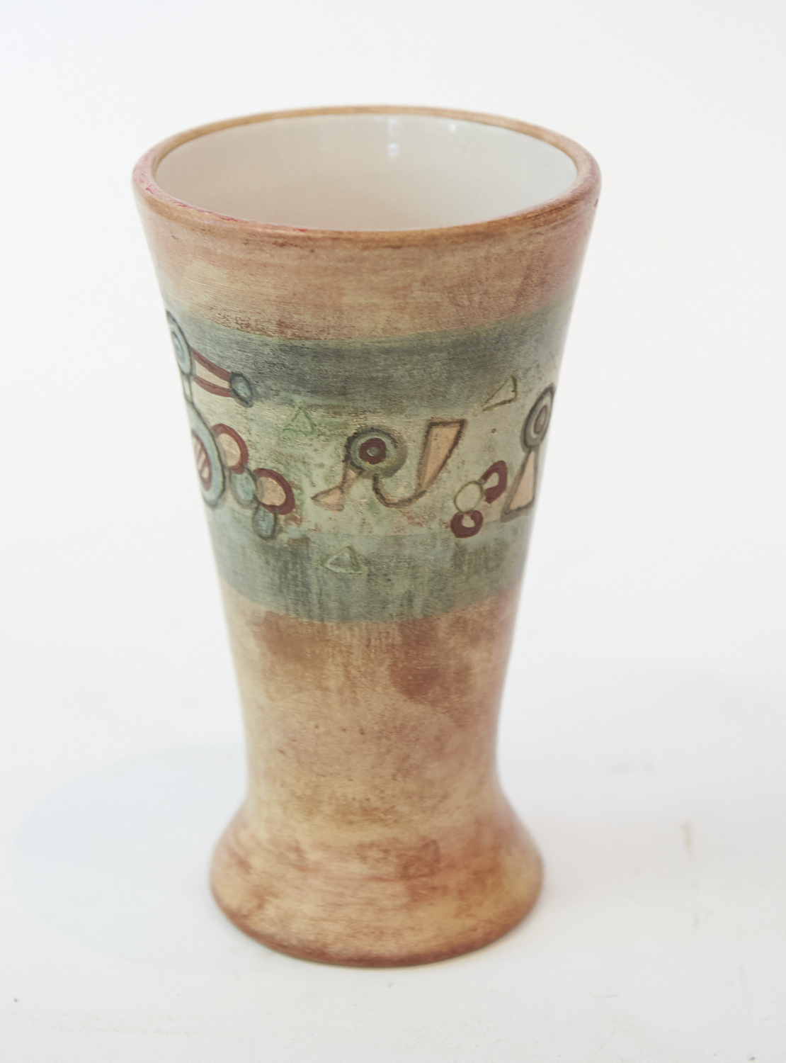 A HAND PAINTED ABSTRACT CERAMIC VASE BY PABLO SEMINARIO (PERU) H.20CM, LEONARD JOEL LOCAL DELIVERY SIZE: SMALL