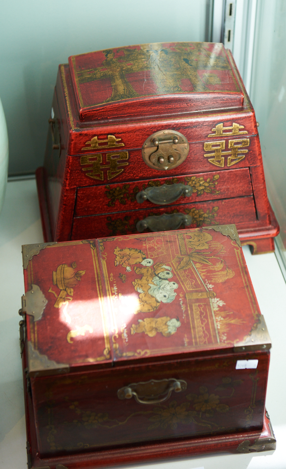 TWO CHINESE VANITY BOXES/DRAWER SETS, ONE WITH MIRROR, LEONARD JOEL LOCAL DELIVERY SIZE: SMALL