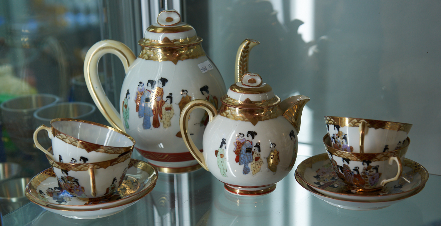 A JAPANESE EGG SHELL PORCELAIN COFFEE AND TEA SET WITH FOUR CUPS AND SAUCERS, LEONARD JOEL LOCAL DELIVERY SIZE: SMALL