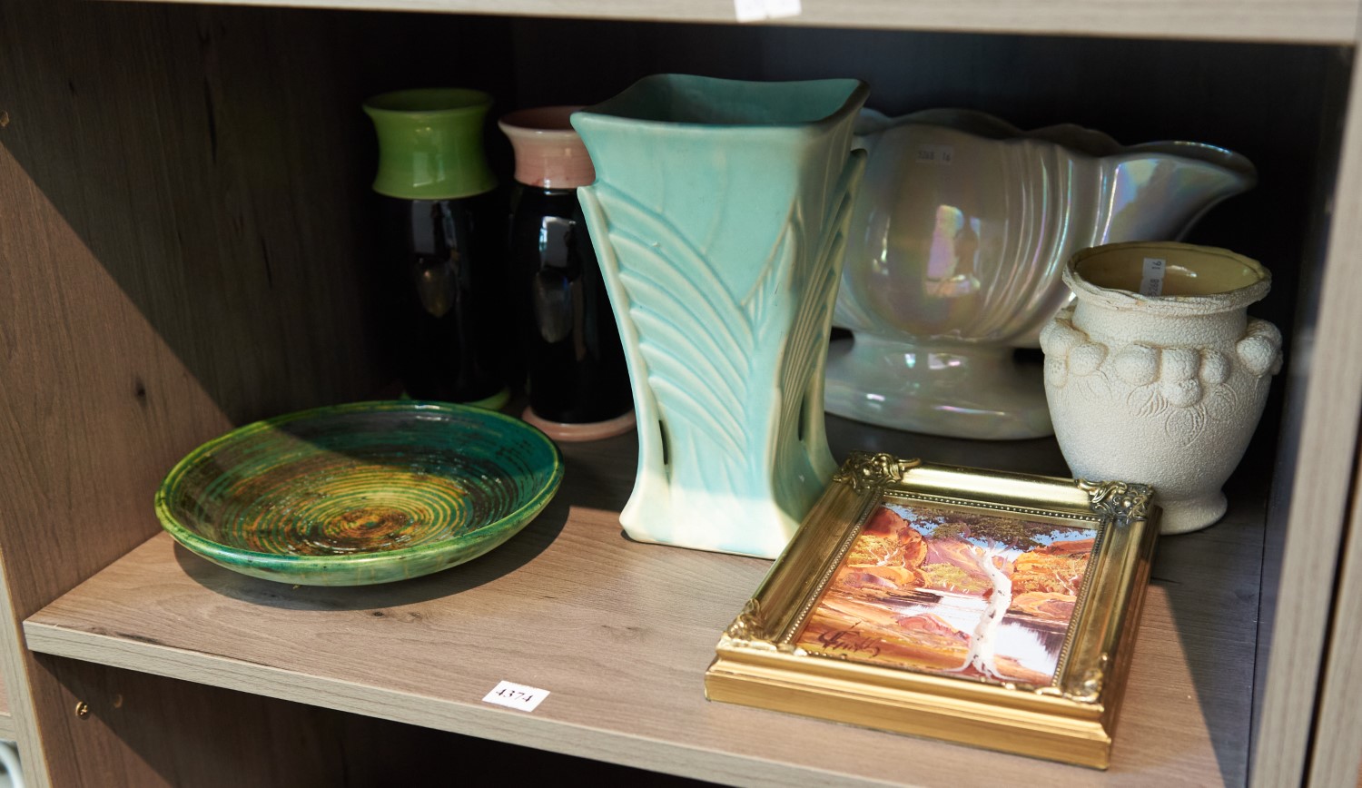 A COLLECTION OF AUSTRALIAN POTTERY INCLUDING RONA MURPHY, ERIC JUCKERT, WILS, MCOY AND PAINTING BY HENK GUTH, LEONARD JOEL LOCAL DELIVERY SIZE: SMALL