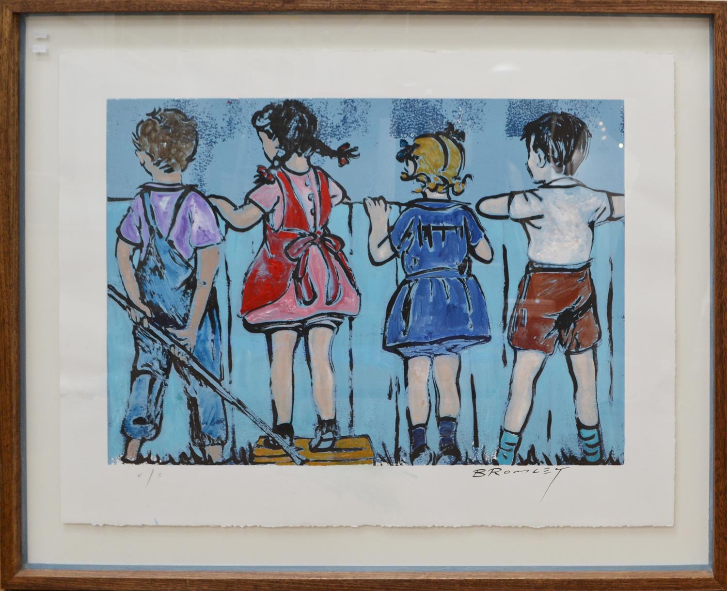 DAVID BROMLEY, FOUR SCHOOLGIRLS, SCREENPRINT, 60 X 84CM, LEONARD JOEL DELIVERY SIZE: LARGE, CONDITION: VERY GOOD
