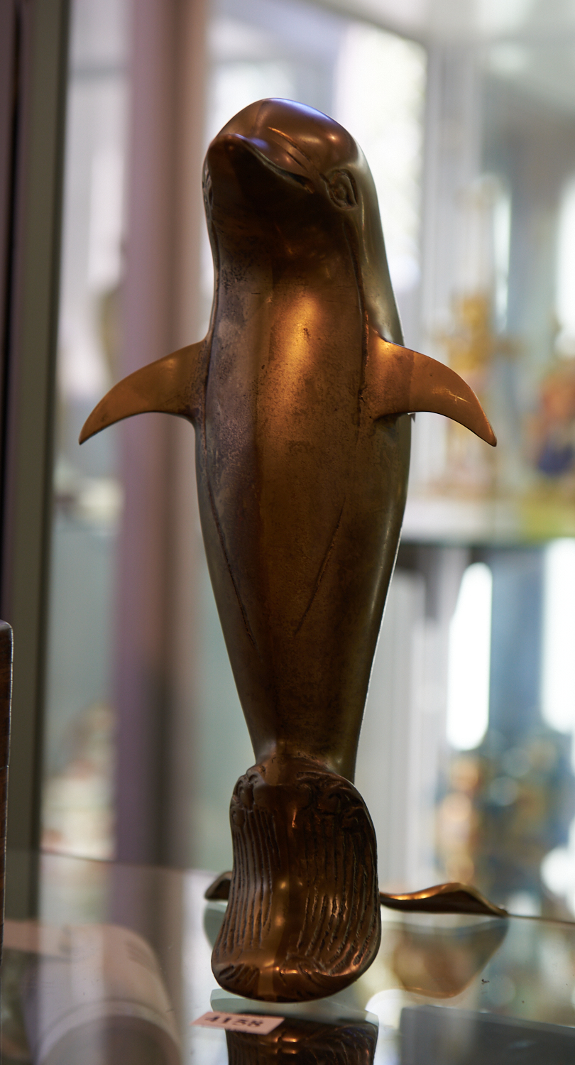 A BRASS SCULPTURE OF A DOLPHIN (30 CM H), LEONARD JOEL LOCAL DELIVERY SIZE: SMALL