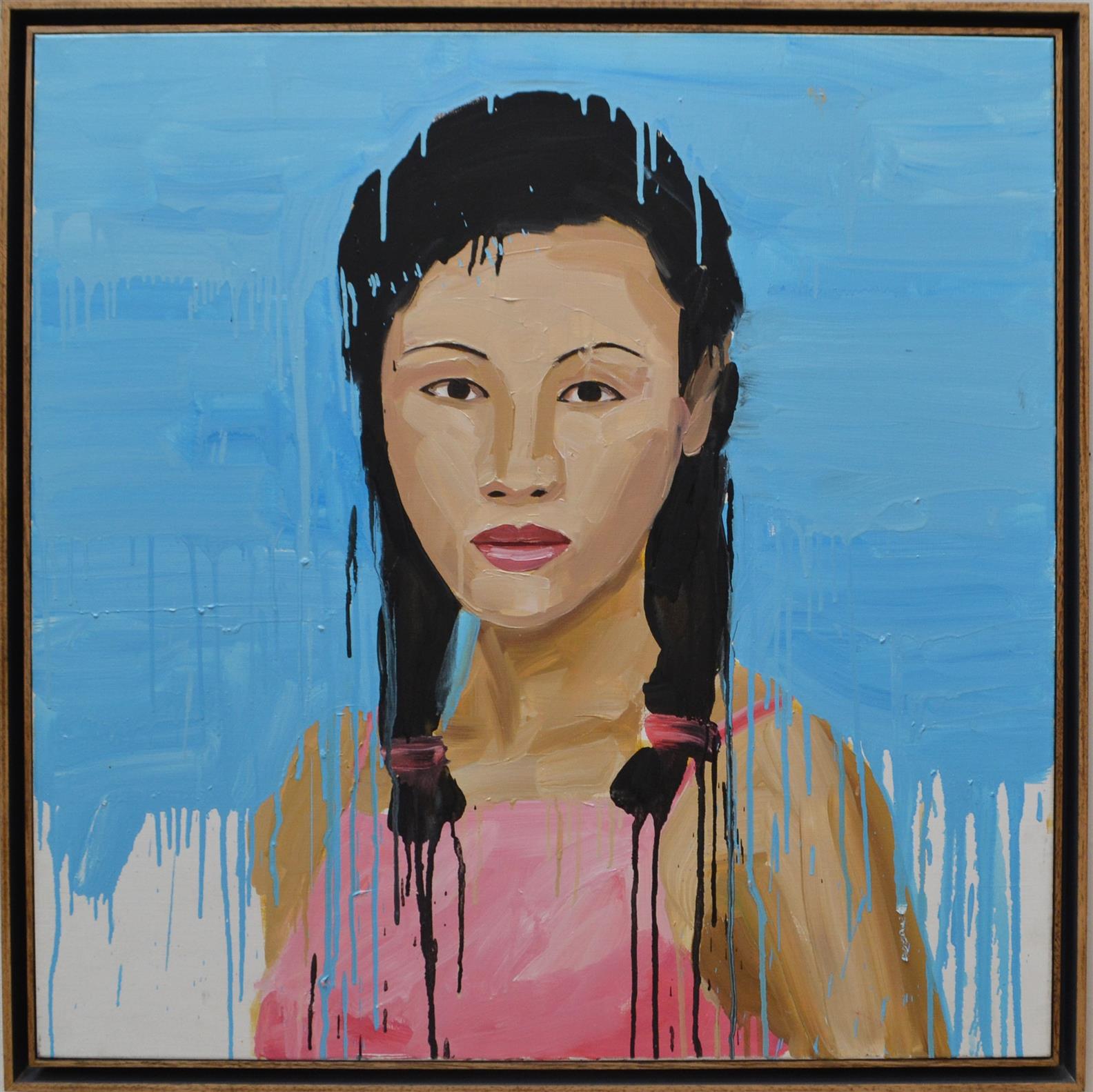 ZHONG CHEN, WOMEN IN PINK, OIL ON LINEN, SIGNED VERSO, 86 X 87CM