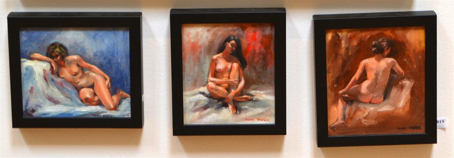 TONI FINNA, TRIO OF NUDE STUDIES, OIL ON CANVASBOARD, 20 X 17CM (EACH), LEONARD JOEL DELIVERY SIZE: SMALL