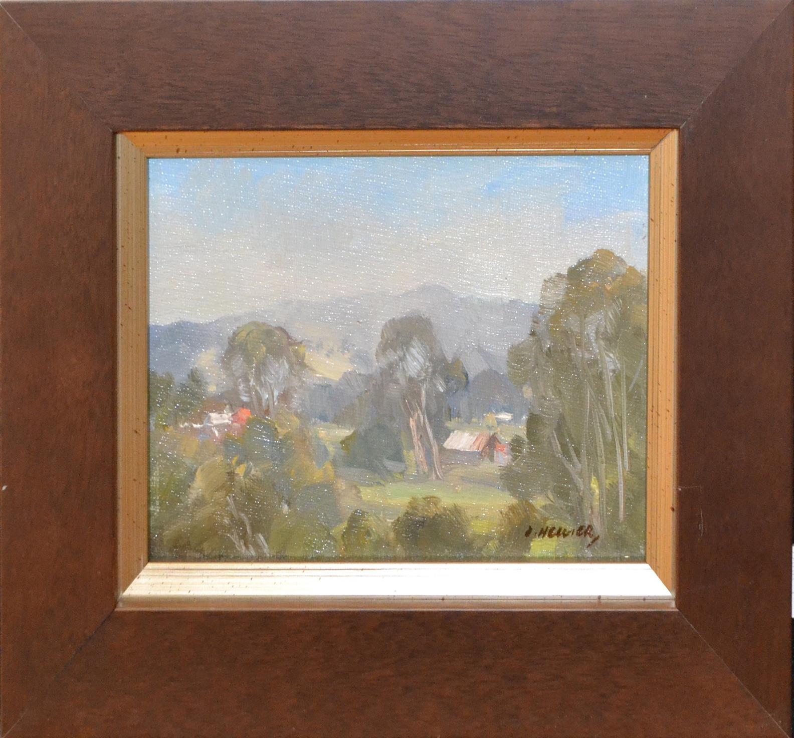 DERMONT HELLIER, MUDGEERABA LANDSCAPE, OIL ON CANVAS BOARD, 12 X 17CM, LEONARD JOEL DELIVERY SIZE: SMALL