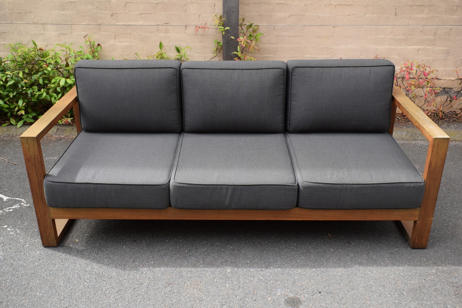 A JATI TEAK OUTDOOR BENCH (A/F) (H83 X W195 X D83 CM)  (PLEASE NOTE THIS HEAVY ITEM MUST BE REMOVED BY CARRIERS AT THE CUSTOMER'S EXPENSE. LEONARD JOEL STAFF CANNOT ASSIST CARRYING THIS ITEM) (X-LARGE ITEM)