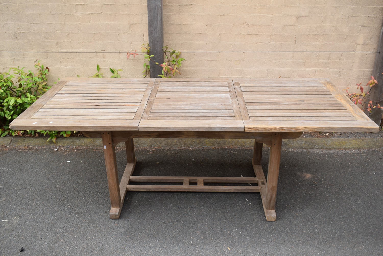 A JATI TEAK EXTENSION OUTDOOR TABLE (A/F) (H72 X W150 X D90 CM) (210 CM EXTENDED) (PLEASE NOTE THIS HEAVY ITEM MUST BE REMOVED BY CARRIERS AT THE CUSTOMER'S EXPENSE. LEONARD JOEL STAFF CANNOT ASSIST CARRYING THIS ITEM) (X-LARGE ITEM)