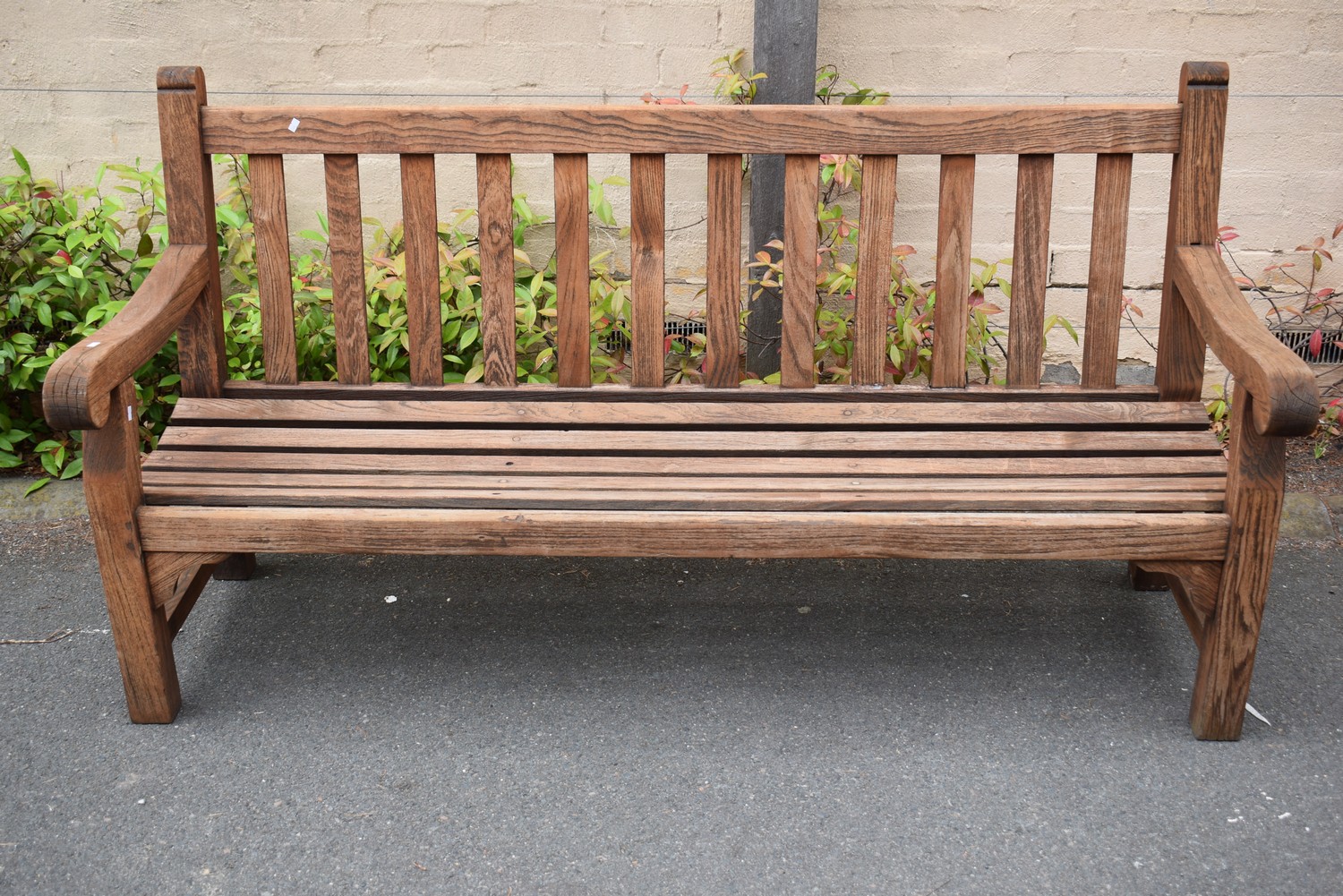 A THREE SEATER TEAK OUTDOOR BENCH BY PARK LANE GARDEN FURNITURE (H97 X W183 X D69 CM)  (LEONARD JOEL DELIVERY SIZE: LARGE)