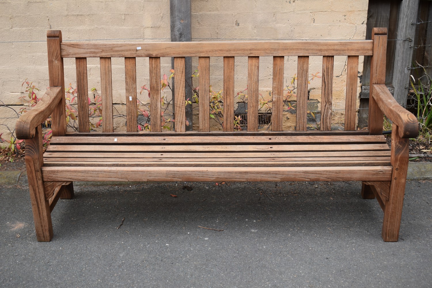 A THREE SEATER TEAK OUTDOOR BENCH BY PARK LANE GARDEN FURNITURE (H97 X W180 X D69 CM)  (LEONARD JOEL DELIVERY SIZE: LARGE)