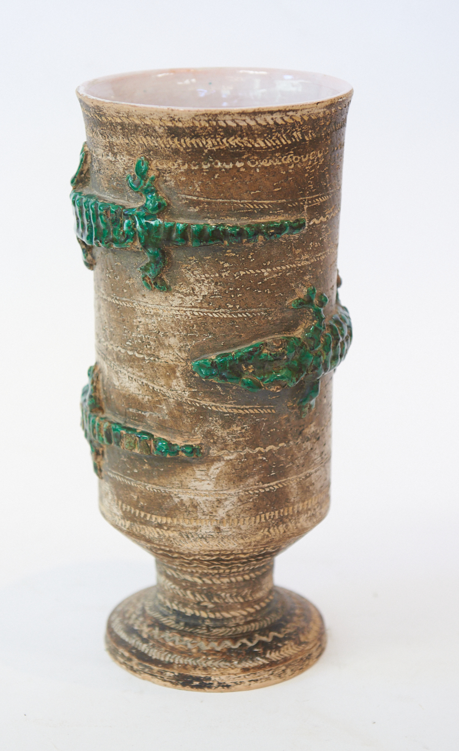 ITALIAN BITOSSI CROCODILE ADORNED VASE, SIGNED IN GOLD WRITING TO UNDERSIDE , LEONARD JOEL LOCAL DELIVERY SIZE: SMALL