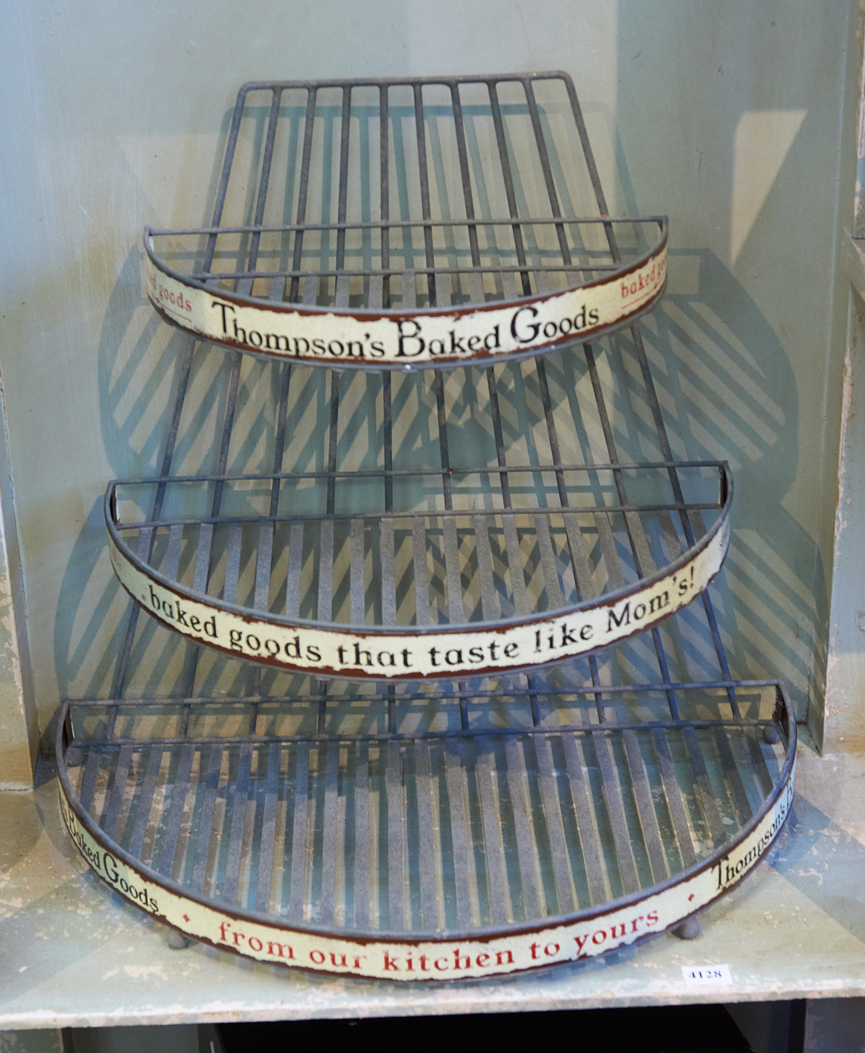 METAL AND ENAMEL THOMPSONS BAKED GOODS THREE TIER SHOP DISPLAY STAND, LEONARD JOEL LOCAL DELIVERY SIZE: SMALL