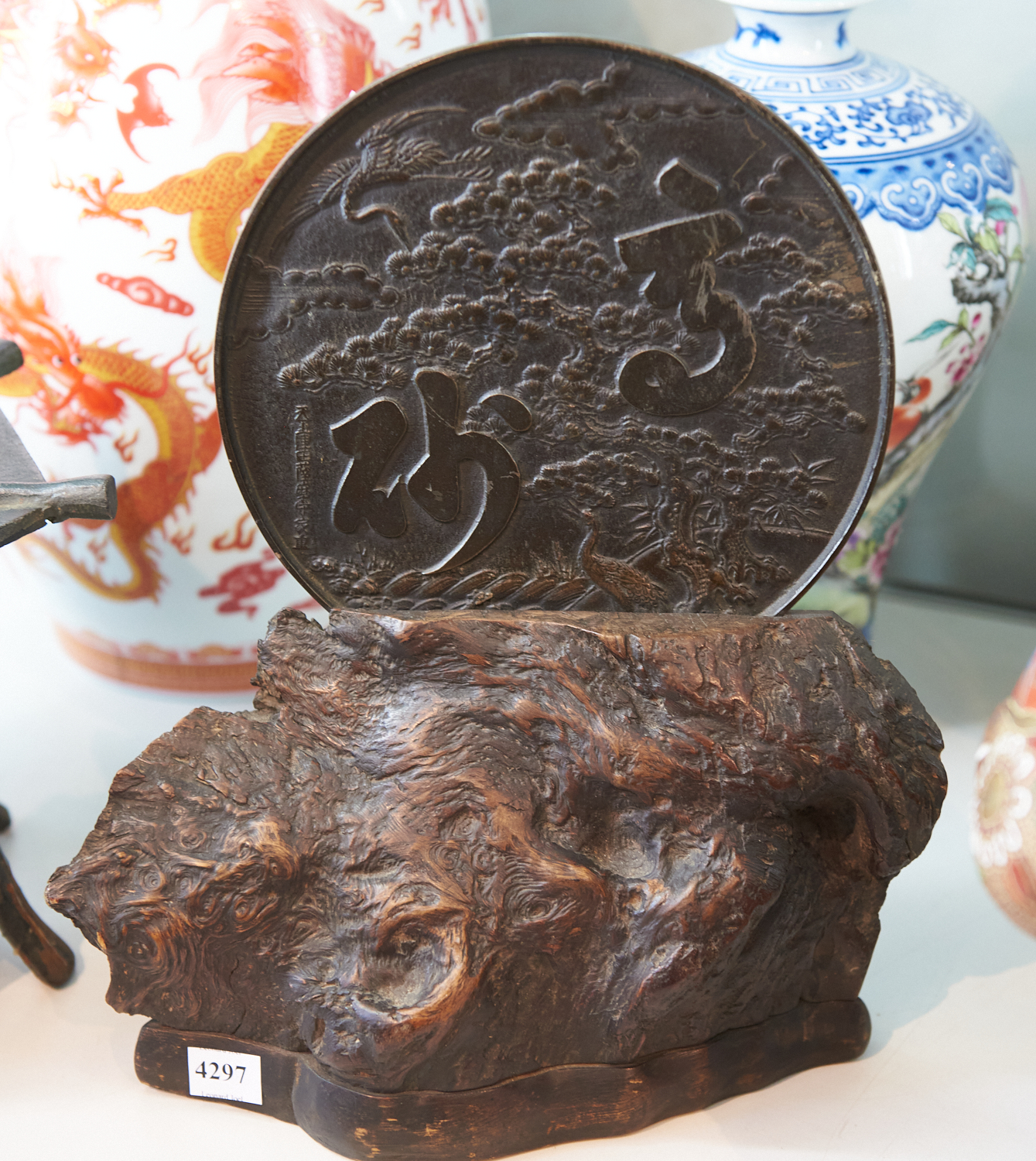 19TH CENTURY JAPANESE MIRROR SET INTO WOODEN BASE H.35CM, LEONARD JOEL LOCAL DELIVERY SIZE: SMALL