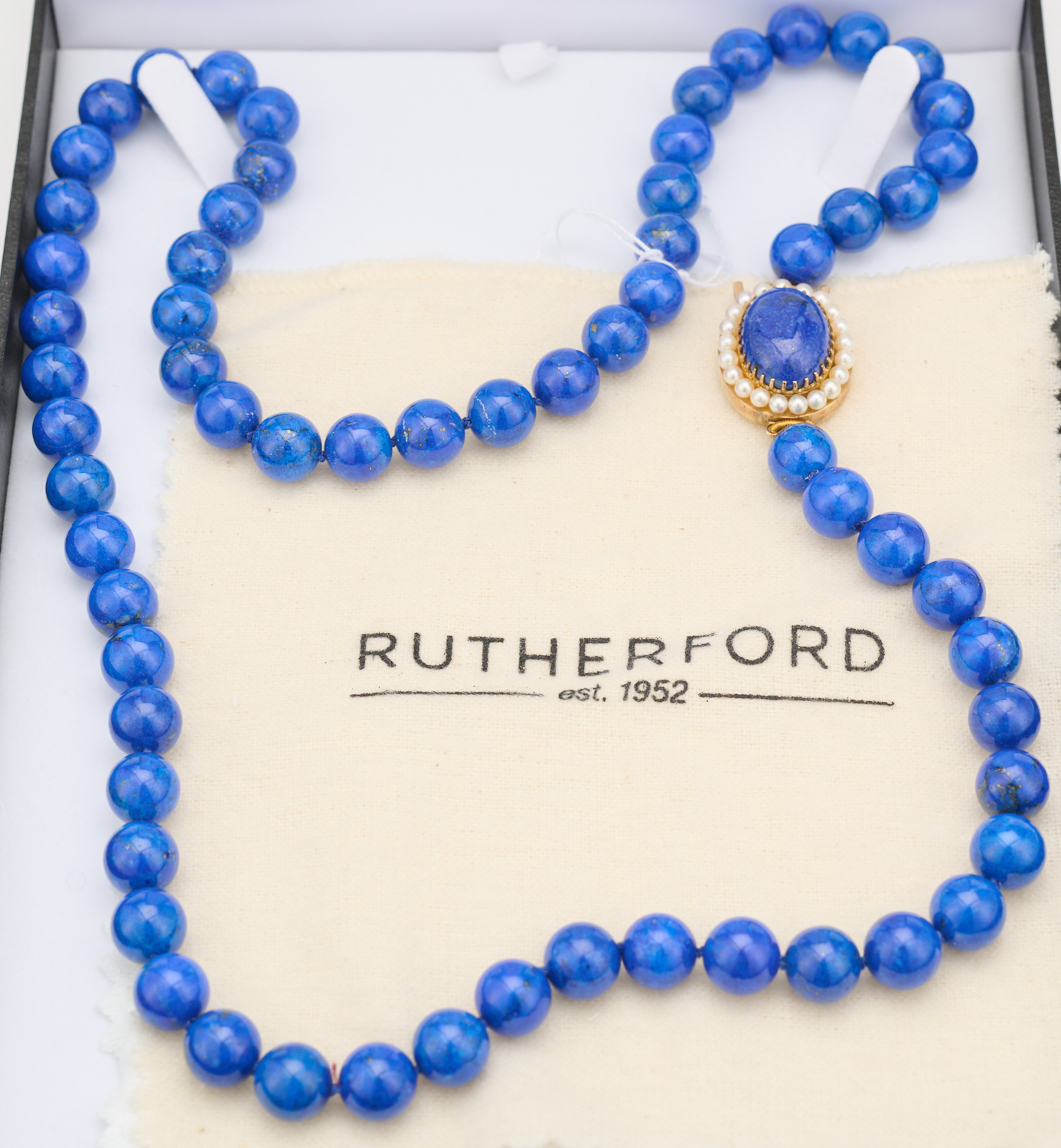 A LAPIS LAZULI NECKLACE WITH 9CT GOLD LAPIS LAPIS AND PEARL CLASP
