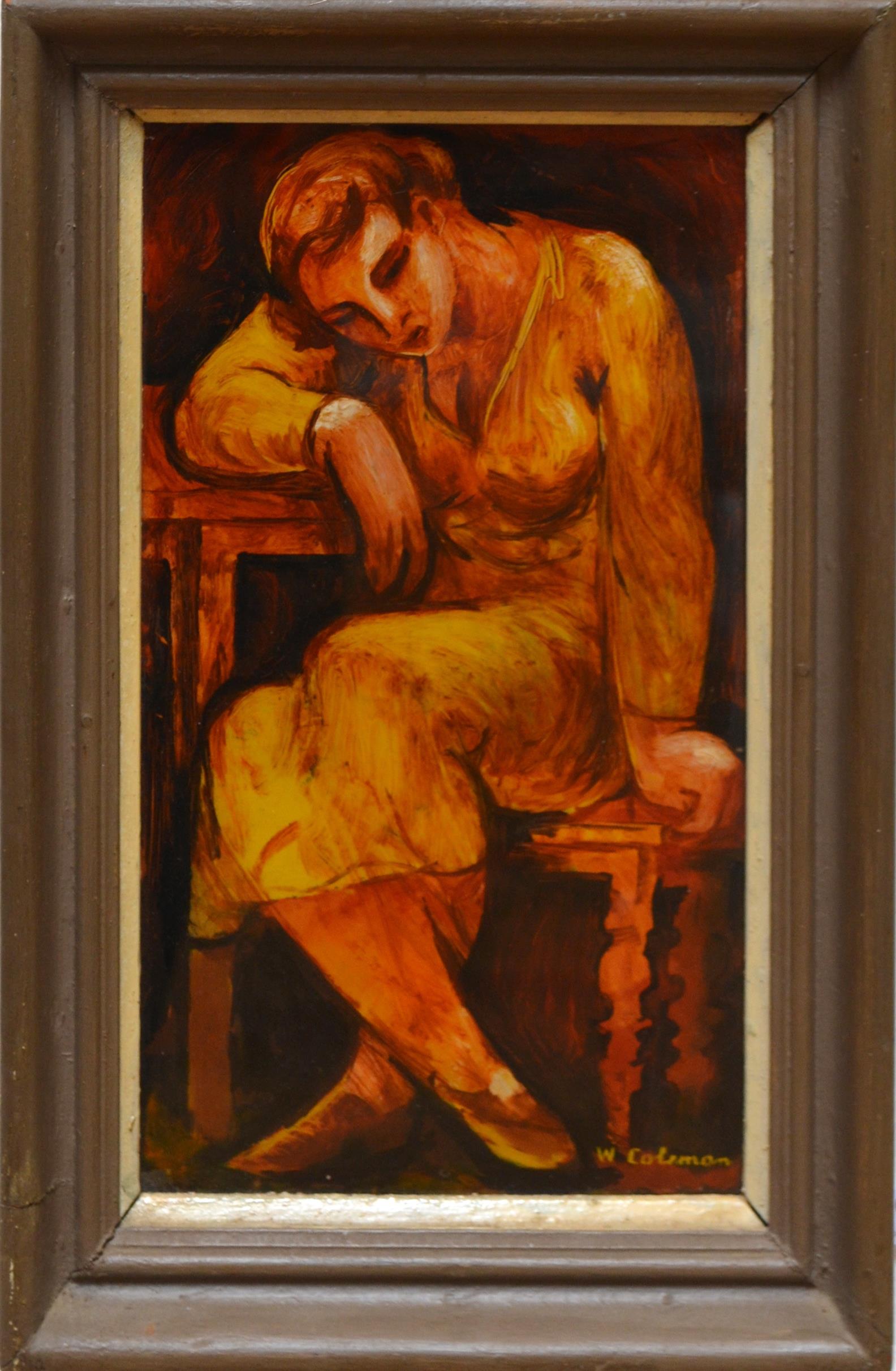 BILL COLEMAN, RESTING GIRL, OIL ON PERSPEX, 32 X 19CM, LEONARD JOEL DELIVERY SIZE: SMALL