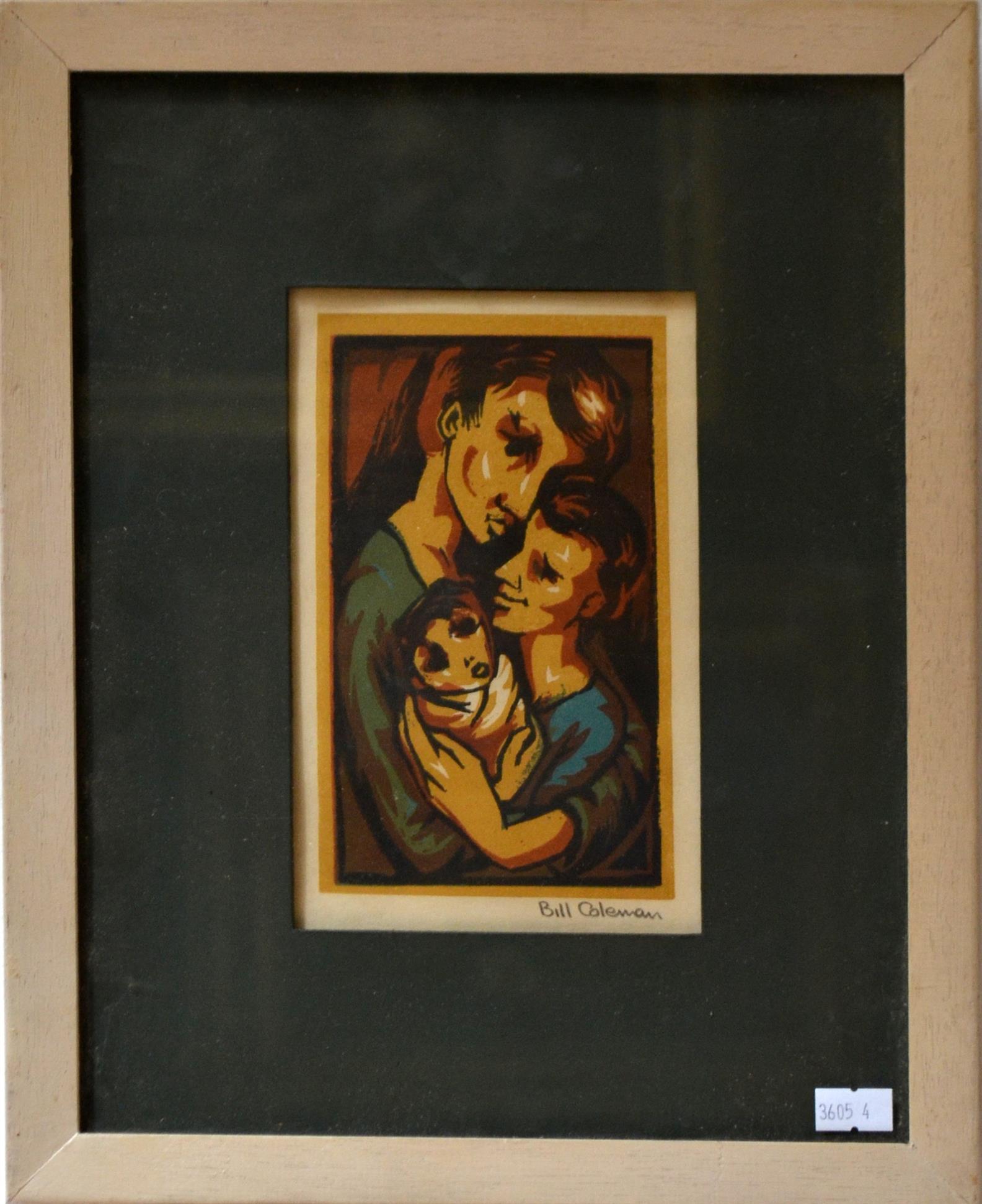 BILL COLEMAN, FAMILY, LINOCUT, 10 X 8CM