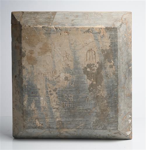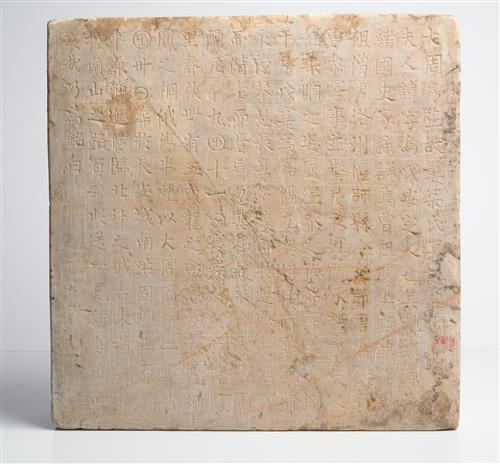 The two parts carved as square plaques, one with chamfered edges, both with lengthy inscriptions describing the life of a government official's wife.
