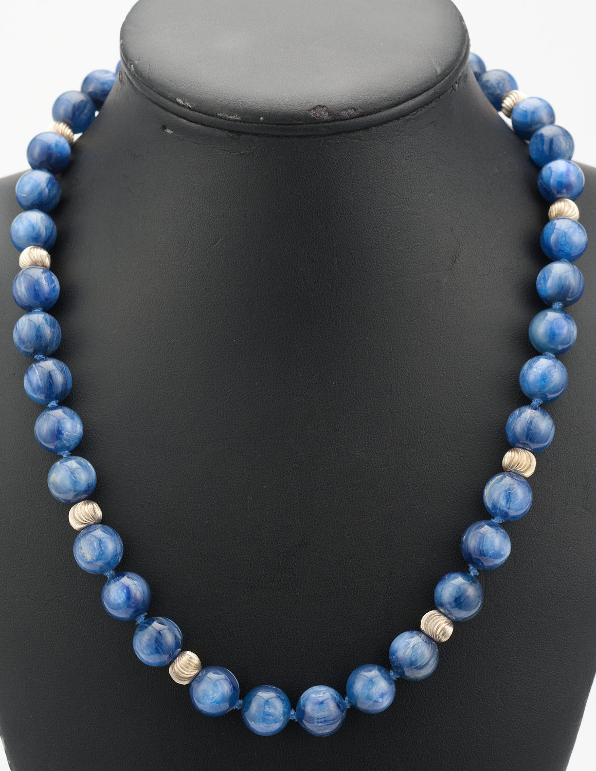 A STRAND OF KYANITE BEADS TO A MAGNETIC CLASP WITH A MATCHING BRACELET