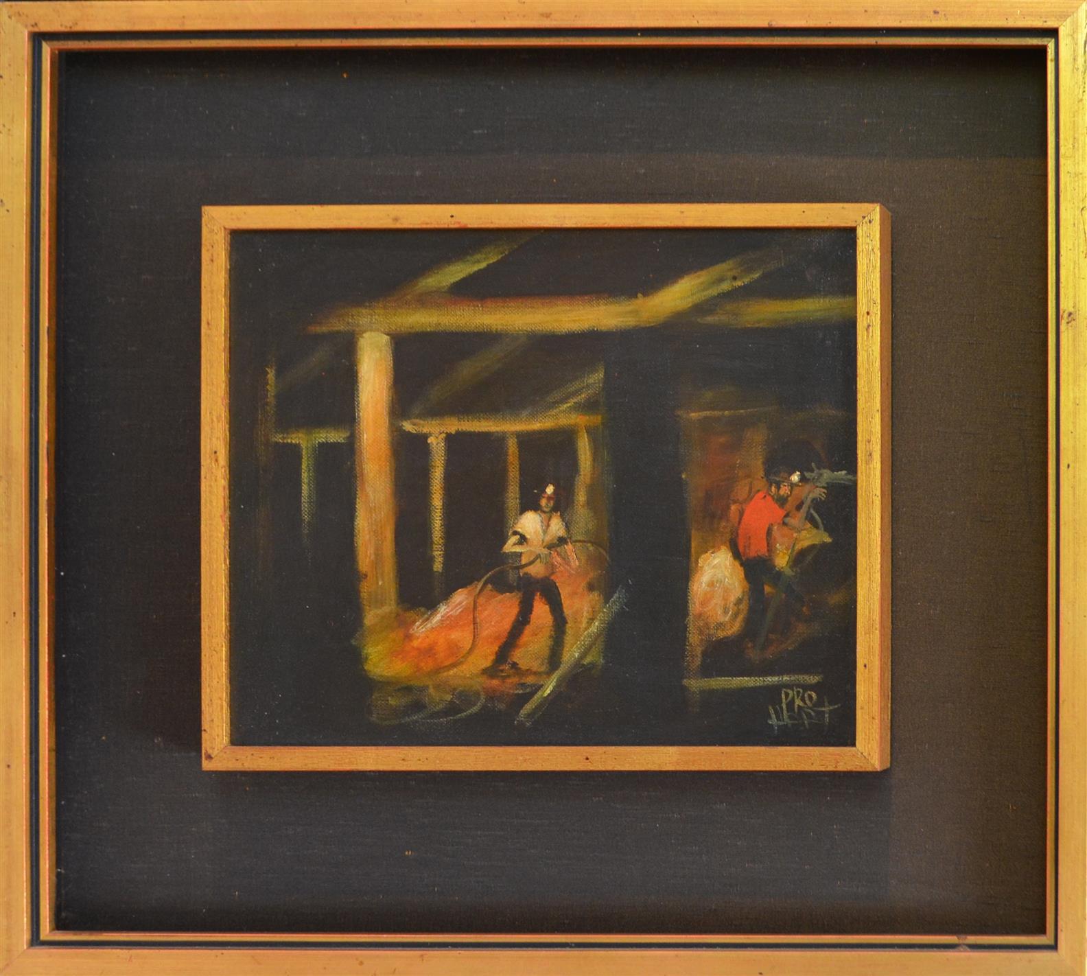 PRO HART, UNTITLED (MINERS), OIL ON CANVAS, 40 X 30CM