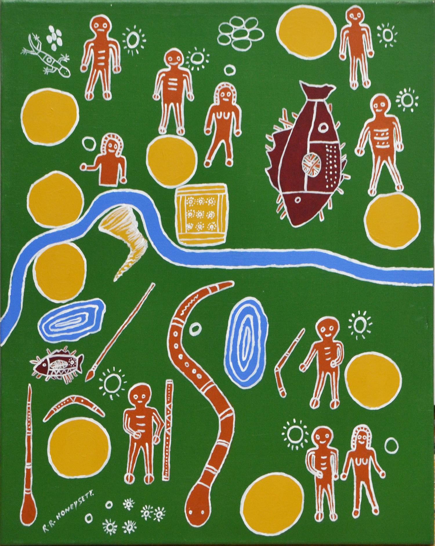 SIGNED R R HONEYSETT, UNTITLED, ACRYLIC ON CANVAS, 60 X 50CM