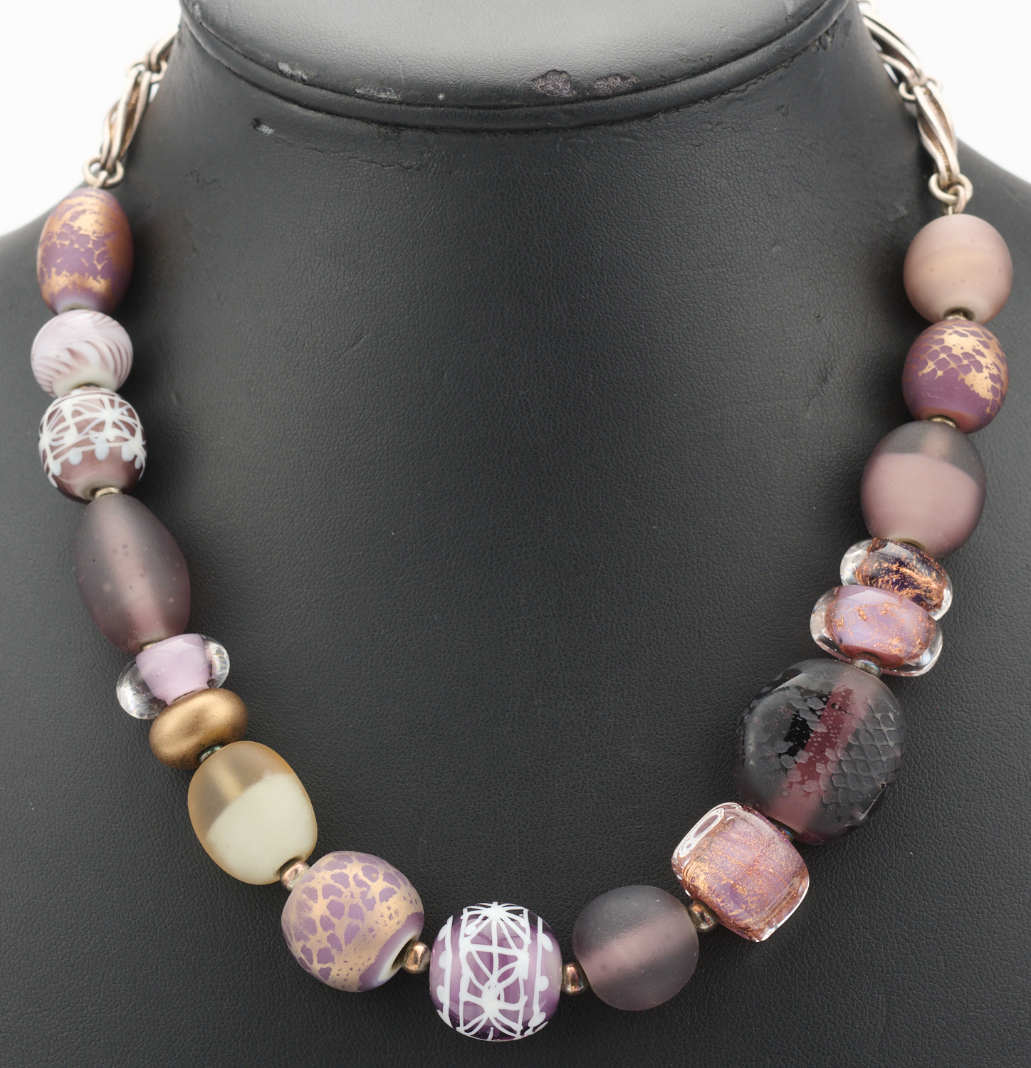 A GLASS BEAD NECKLACE WITH SILVER FITTINGS BY LIYA SIMMONY