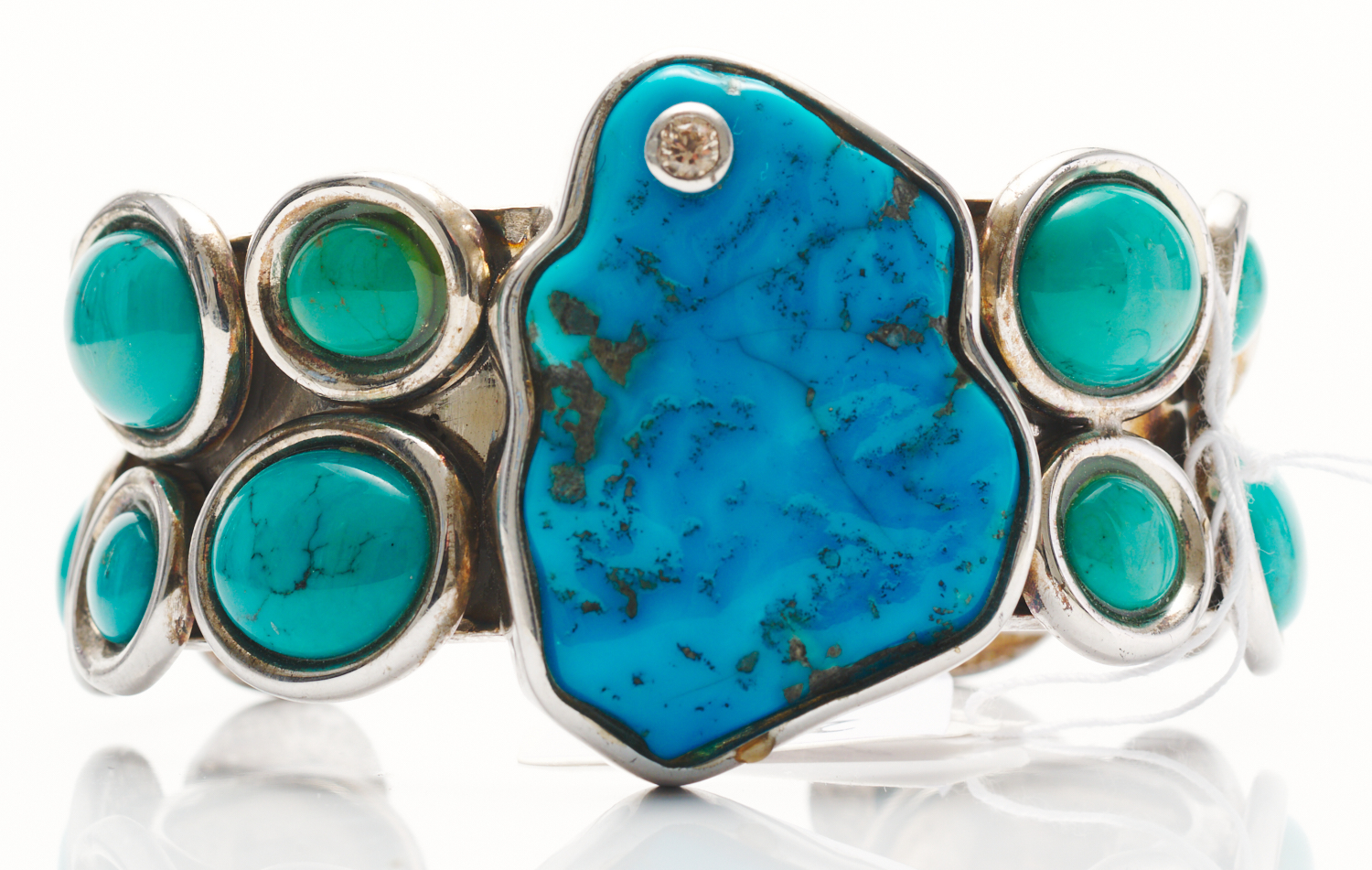 A TURQUOISE WIDE CUFF IN STERLING SILVER, INNER DIAMETER 65MM