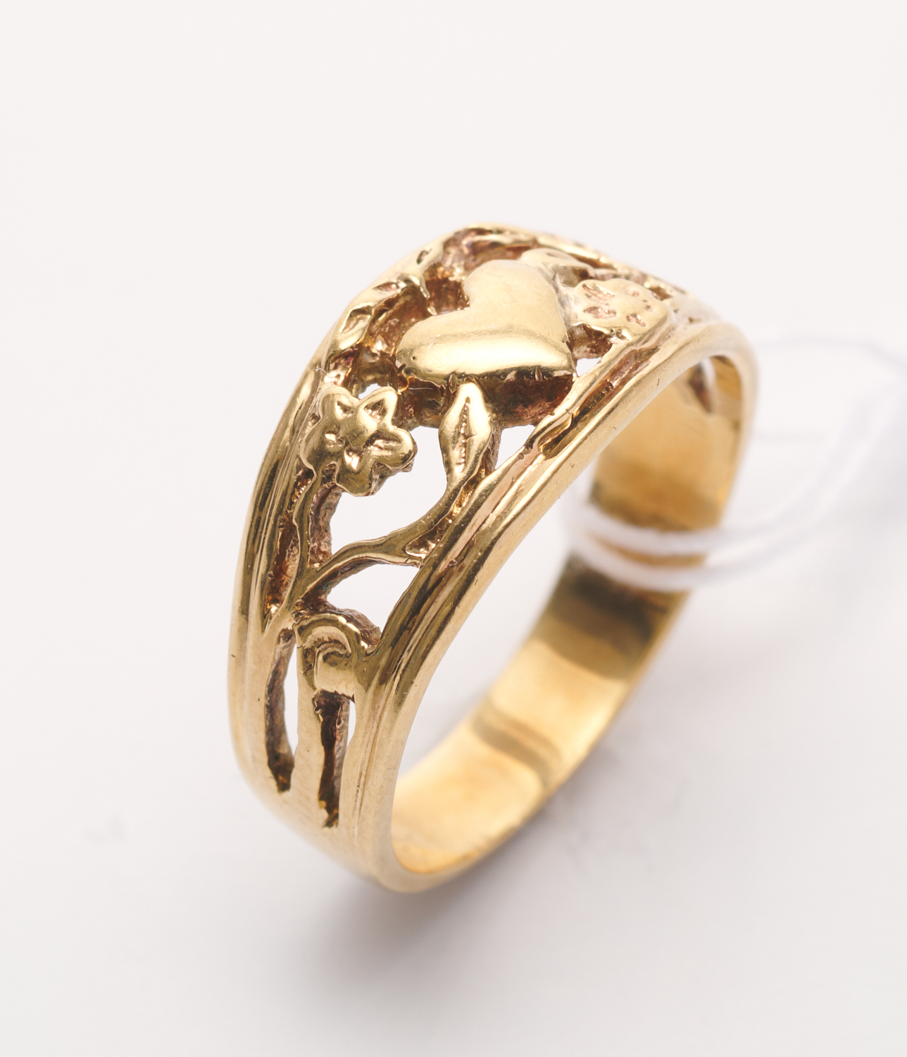 A HEART DESIGN DRESS RING IN 9CT GOLD, SIZE M-N, 3.6GMS