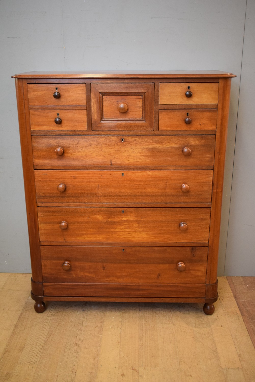 A VICTORIAN CEDAR EIGHT DRAWER TALL BOY CHEST WITH ROUNDED CORNERS (A/F) (146H x 120W x 51D CM) (PLEASE NOTE THIS HEAVY ITEM MUST BE REMOVED BY CARRIERS AT THE CUSTOMER'S EXPENSE. LEONARD JOEL STAFF CANNOT ASSIST CARRYING THIS ITEM) (X-LARGE ITEM)