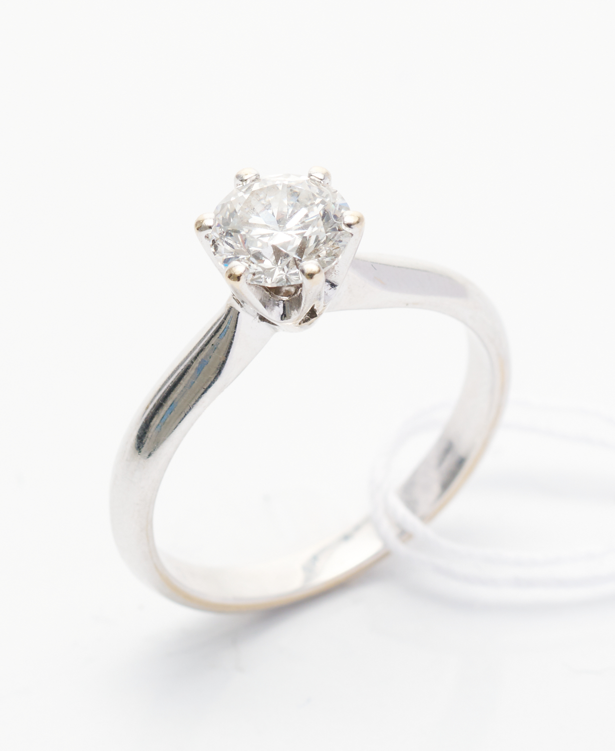 A SOLITAIRE DIAMOND RING IN 18CT WHITE GOLD, THE ROUND BRILLIANT CUT DIAMOND ESTIMATED 0.90CTS, SIZE N, 3.4GMS