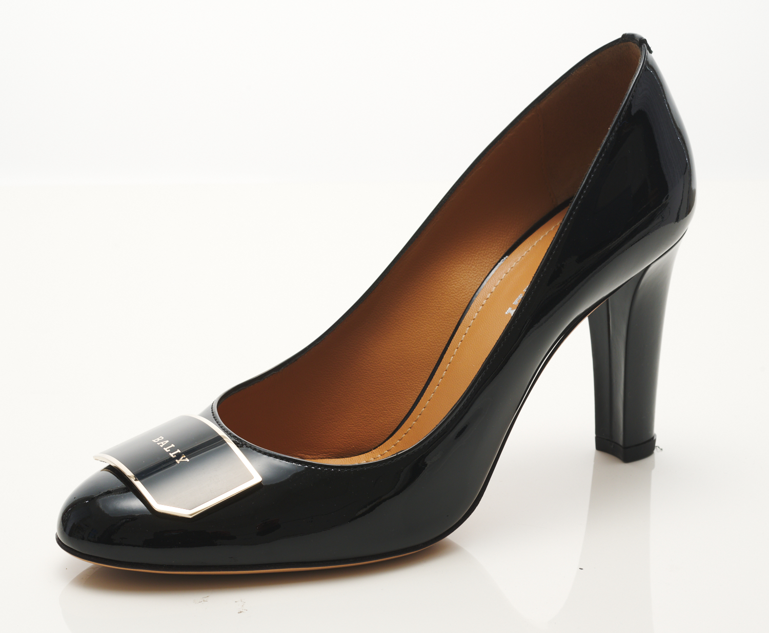 A PAIR OF BLACK PATENT LEATHER SHOES BY BALLY, SIZE 40