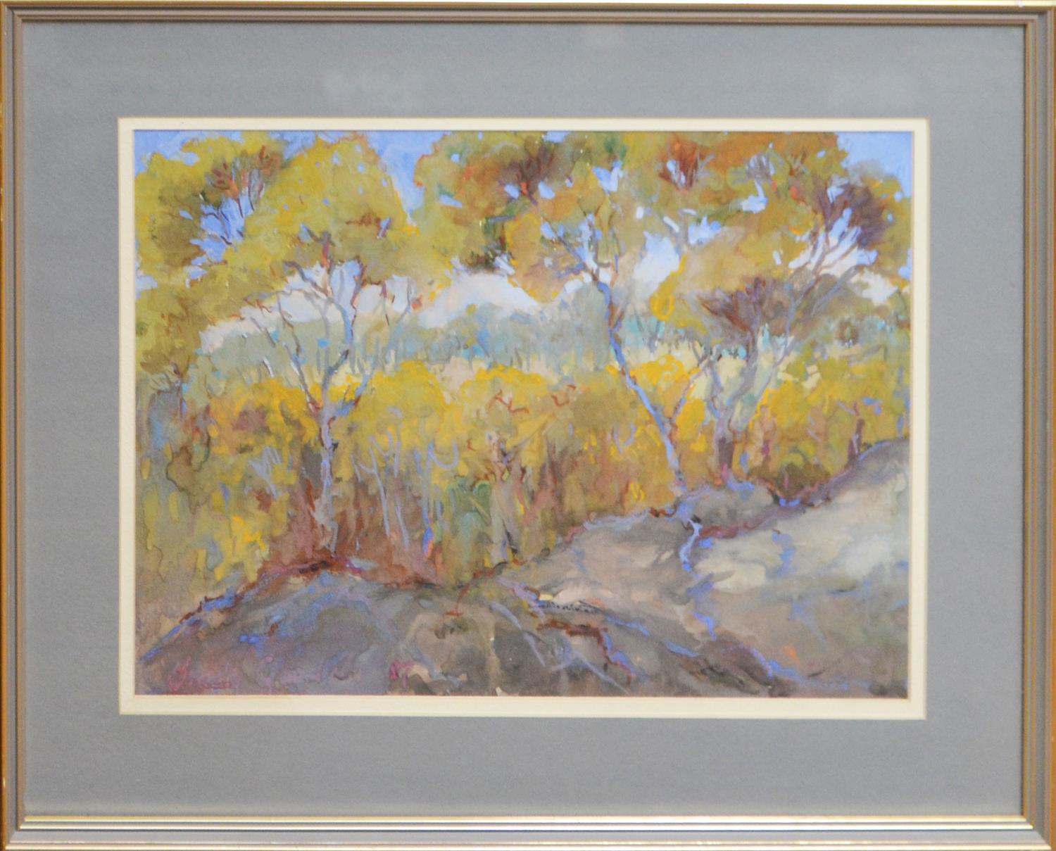 TRUDY GOODWIN, BUSH SHADOWS, GOUACHE ON PAPER, 26.5 X 37CM