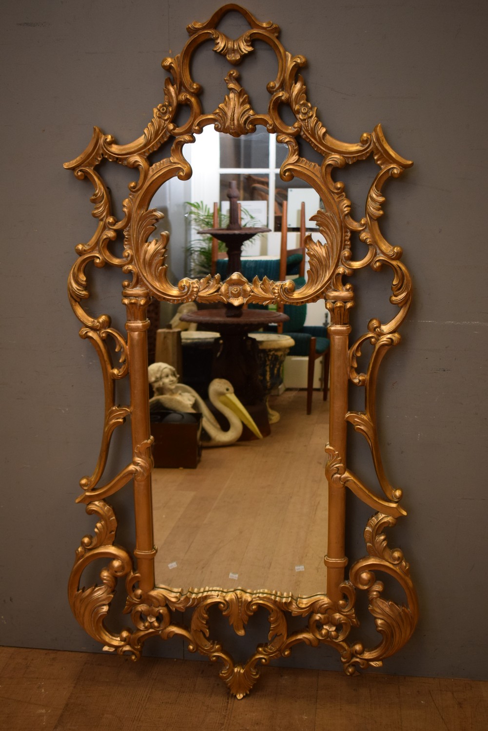 A DECORATIVE GILT FRAMED WALL MIRROR (H170 X W89 CM) (LEONARD JOEL DELIVERY SIZE: LARGE)
