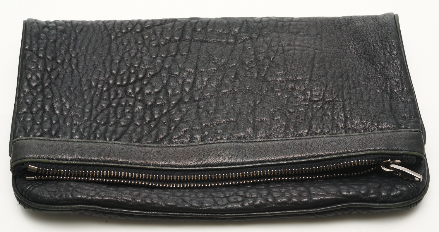 Styled in black pebbled leather with gunmetal hardware, 20 x 33cm folded and 36 x 33 cm fully open.