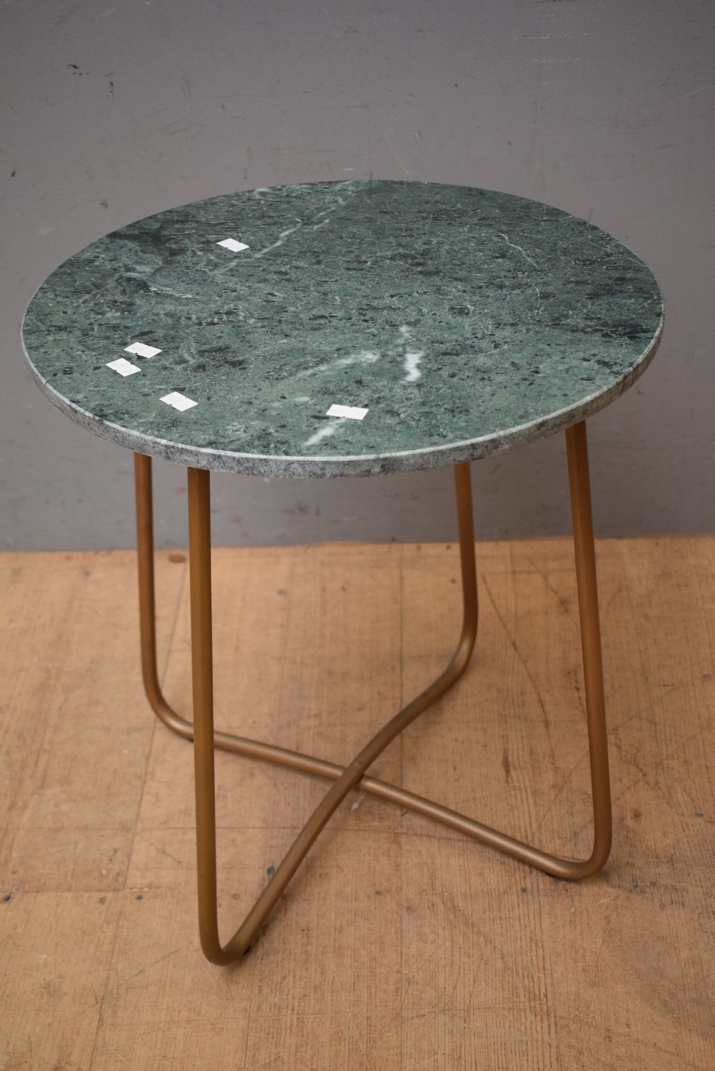 A SMALL CIRCULAR MARBLE TOP TABLE (H45 X D42 CM) (LEONARD JOEL DELIVERY SIZE: MEDIUM)