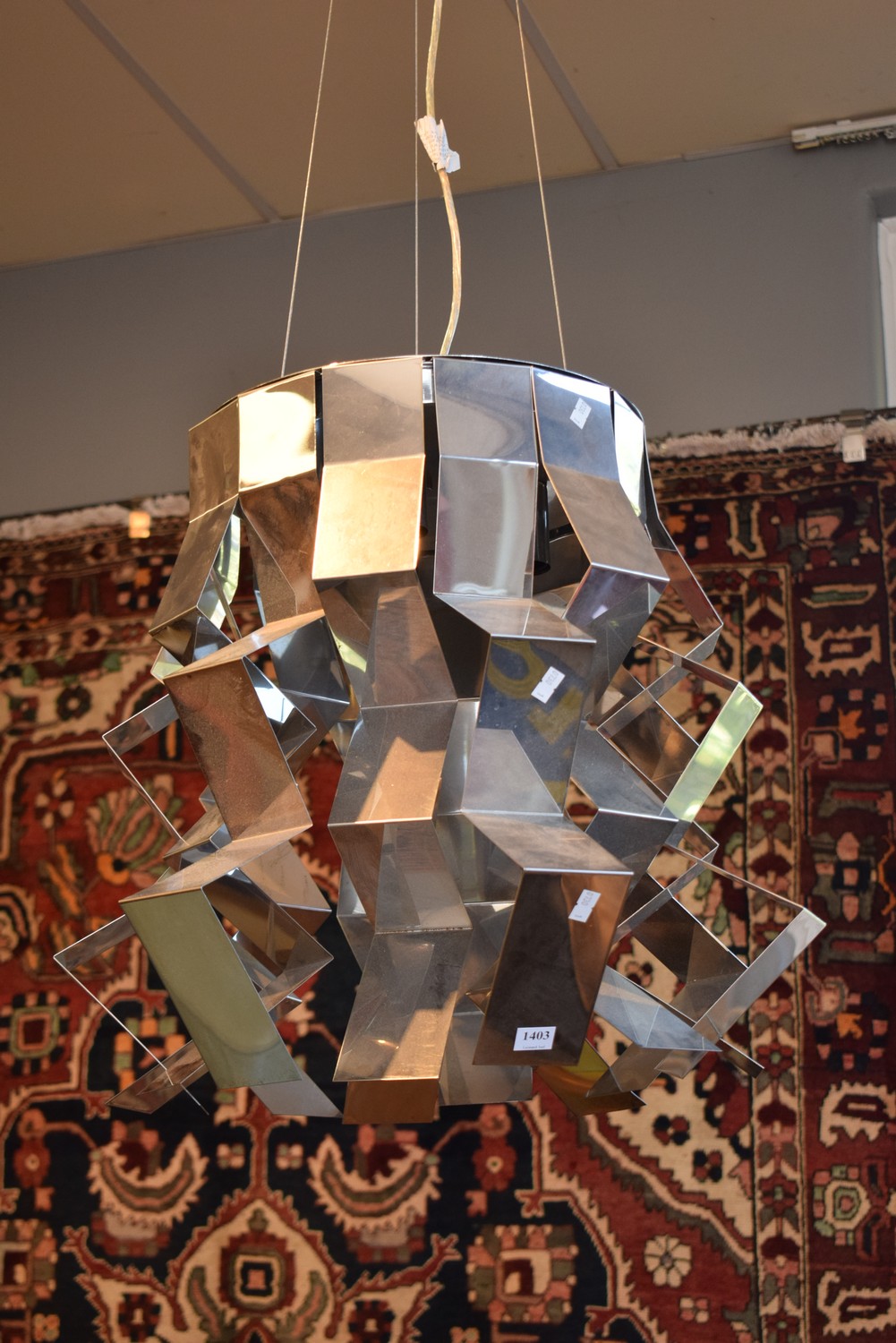 A CONTEMPORARY CRIMPED STAINLESS STEEL CEILING LIGHT (50H x 52D CM) (LEONARD JOEL DELIVERY SIZE: LARGE)