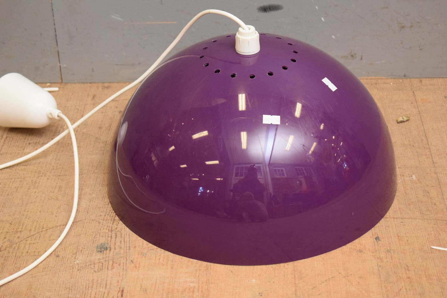 A 1970S PLASTIC DOME PENDANT LIGHT IN PURPLE (A/F) (H23 X D32 CM) (LEONARD JOEL DELIVERY SIZE: MEDIUM)